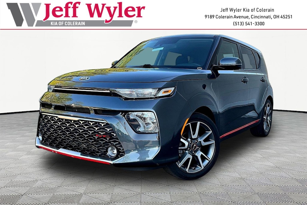 Jeff Wyler Kia of Colerain is excited to offer this beautiful 2021 Kia Soul GT-Line in Gravity Gray. 4-Wheel Disc Brakes, 6 Speakers, ABS brakes, Air Conditioning, Alloy wheels, AM/FM radio, Apple CarPlay & Android Auto, Brake assist, Bumpers: body-color, Delay-off headlights, Driver door bin, Driver vanity mirror, Dual front impact airbags, Dual front side impact airbags, Electronic Stability Control, Exterior Parking Camera Rear, Front anti-roll bar, Front Bucket Seats, Front Center Armrest, Front fog lights, Front reading lights, Front wheel independent suspension, Fully automatic headlights, Leather Shift Knob, Leather steering wheel, Low tire pressure warning, Occupant sensing airbag, Outside temperature display, Overhead airbag, Overhead console, Passenger door bin, Passenger vanity mirror, Power door mirrors, Power moonroof, Power steering, Power windows, Premium Cloth Seat Trim, Radio: AM/FM/MP3 Audio System, Rear window defroster, Rear window wiper, Remote keyless entry, Speed control, Speed-sensing steering, Split folding rear seat, Sport steering wheel, Steering wheel mounted audio controls, Tachometer, Telescoping steering wheel, Tilt steering wheel, Traction control, Trip computer, Variably intermittent wipers, and Wheels: 18" x 7.5 Alloy Our PRE-OWNED vehicles are put through a rigorous 167- POINT QUALITY ASSURANCE INSPECTION along with an average amount of over $1,400.00 SPENT to recondition each vehicle so we can be sure to deliver you the highest quality vehicle like you deserve! ***ONLINE PRICE DOES NOT INCLUDE WYLER FAMILY FIRST PACKAGE***