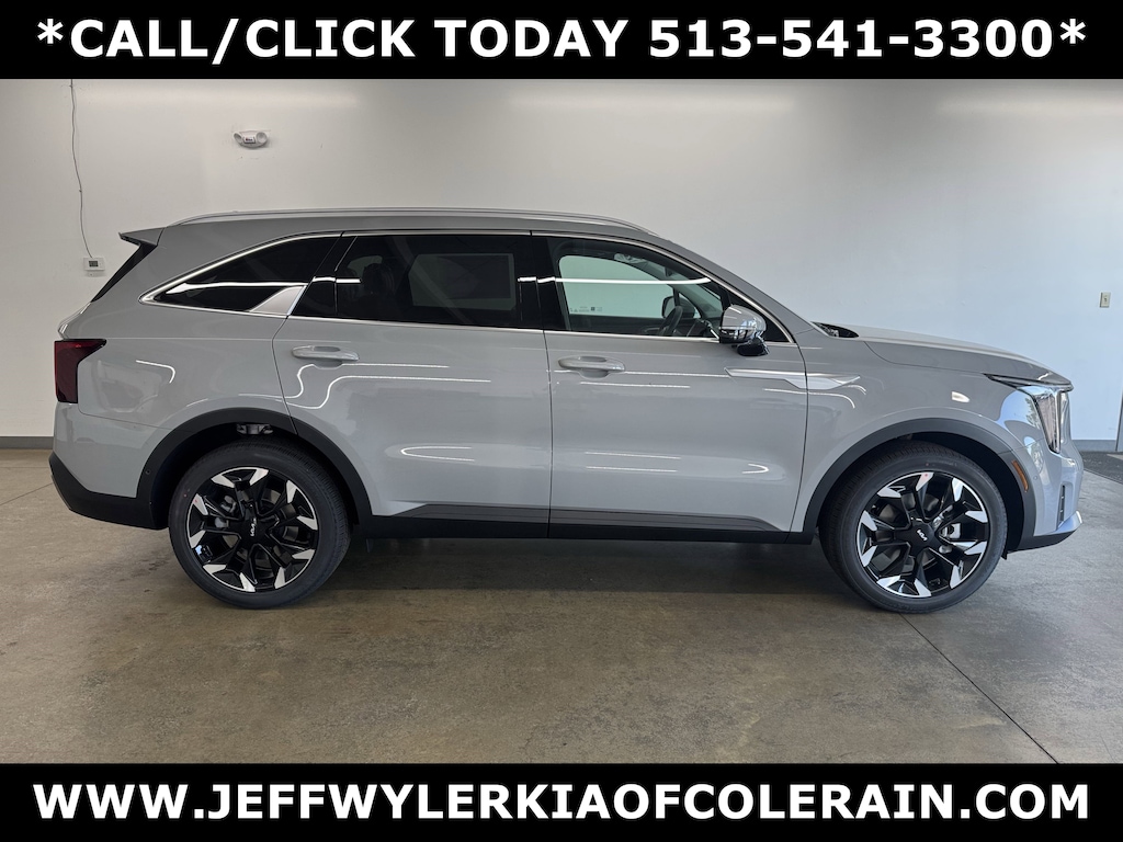 Jeff Wyler Kia of Colerain is pumped up to offer this stunning 2025 Kia Sorento SX in Wolf Gray. 3rd row seats: split-bench, 4-Wheel Disc Brakes, 6 Speakers, ABS brakes, Air Conditioning, Alloy wheels, AM/FM radio: SiriusXM, Apple CarPlay & Android Auto, Auto High-beam Headlights, Auto-dimming Rear-View mirror, Automatic temperature control, Brake assist, Bumpers: body-color, Carpeted Floor Mats, Delay-off headlights, Driver door bin, Driver vanity mirror, Dual front impact airbags, Dual front side impact airbags, Electronic Stability Control, Emergency communication system: 911 Connect, Exterior Parking Camera Rear, Four wheel independent suspension, Front anti-roll bar, Front Bucket Seats, Front Center Armrest, Front dual zone A/C, Front fog lights, Front reading lights, Fully automatic headlights, Heated & Ventilated Front Bucket Seats, Heated door mirrors, Heated front seats, Illuminated entry, Knee airbag, Leather Shift Knob, Leather steering wheel, Low tire pressure warning, Navigation System, Occupant sensing airbag, Outside temperature display, Overhead airbag, Overhead console, Panic alarm, Passenger door bin, Passenger vanity mirror, Power door mirrors, Power driver seat, Power Liftgate, Power moonroof, Power passenger seat, Power steering, Power windows, Radio data system, Radio: AM/FM Standard Sound System, Rain sensing wipers, Rear anti-roll bar, Rear reading lights, Rear side impact airbag, Rear window defroster, Rear window wiper, Remote keyless entry, Security system, Speed control, Speed-sensing steering, Split folding rear seat, Spoiler, Steering wheel mounted audio controls, SynTex Artificial Leather Seat Trim, Tachometer, Telescoping steering wheel, Tilt steering wheel, Traction control, Trip computer, Turn signal indicator mirrors, Variably intermittent wipers, Ventilated front seats, and Wheels: 20" Machine-Finished Gloss Black Alloy Our PRE-OWNED vehicles are put through a rigorous 167- POINT QUALITY ASSURANCE INSPECTION along with an average amount of over $1,400.00 SPENT to recondition each vehicle so we can be sure to deliver you the highest quality vehicle like you deserve! ***ONLINE PRICE DOES NOT INCLUDE WYLER FAMILY FIRST PACKAGE*** Price includes: $750 - Sticker Sales Event Retail Bonus Cash. Exp. 12/01/2025