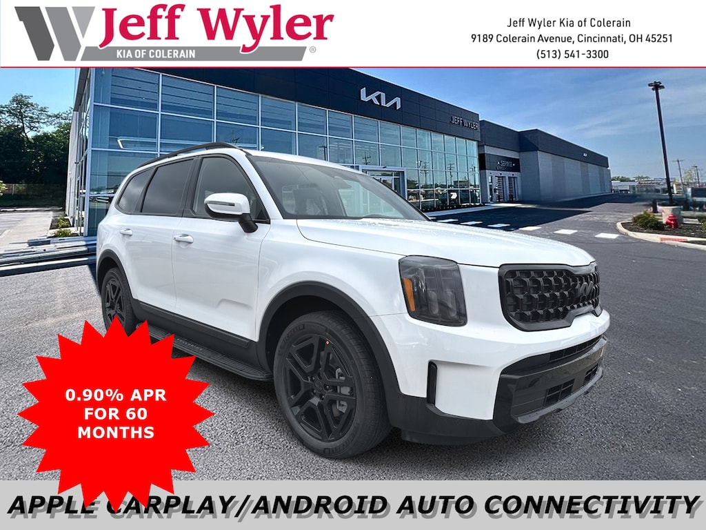 Jeff Wyler Kia of Colerain is honored to offer this wonderful-looking 2025 Kia Telluride EX X-Line in Glacial White Pearl. Terracotta Interior Color Package, 3rd row seats: split-bench, 4-Wheel Disc Brakes, 6 Speakers, ABS brakes, Air Conditioning, Alloy wheels, AM/FM radio: SiriusXM, Apple CarPlay & Android Auto, Auto High-beam Headlights, Auto-dimming Rear-View mirror, Auto-leveling suspension, Automatic temperature control, Black Side Step Bars, Black Wheel Locks, Brake assist, Bumpers: body-color, Carpeted Floor Mats, Compass, Cross Bars X-Line, Delay-off headlights, Driver door bin, Driver vanity mirror, Dual front impact airbags, Dual front side impact airbags, Electronic Stability Control, Emergency communication system: 911 Connect, Exterior Parking Camera Rear, Folding Cargo Tray, Four wheel independent suspension, Front anti-roll bar, Front Bucket Seats, Front Center Armrest, Front dual zone A/C, Front reading lights, Fully automatic headlights, Heated & Ventilated Front Bucket Seats, Heated door mirrors, Heated front seats, Heated steering wheel, Illuminated entry, Knee airbag, Leather Seat Trim, Leather Shift Knob, Leather steering wheel, Low tire pressure warning, Navigation System, Occupant sensing airbag, Outside temperature display, Overhead airbag, Overhead console, Panic alarm, Passenger door bin, Passenger vanity mirror, Power door mirrors, Power driver seat, Power Liftgate, Power moonroof, Power passenger seat, Power steering, Power windows, Radio data system, Radio: AM/FM Display Audio System, Rear air conditioning, Rear anti-roll bar, Rear audio controls, Rear reading lights, Rear side impact airbag, Rear window defroster, Rear window wiper, Reclining 3rd row seat, Remote keyless entry, Security system, Speed control, Speed-sensing steering, Split folding rear seat, Spoiler, Steering wheel mounted audio controls, Tachometer, Telescoping steering wheel, Tilt steering wheel, Traction control, Trip computer, Turn signal indicator mirrors, Variably intermittent wipers, Ventilated front seats, and Wheels: 20" x 7.5" Black Finish X-LINE Exclusive Our PRE-OWNED vehicles are put through a rigorous 167- POINT QUALITY ASSURANCE INSPECTION along with an average amount of over $1,400.00 SPENT to recondition each vehicle so we can be sure to deliver you the highest quality vehicle like you deserve! ***ONLINE PRICE DOES NOT INCLUDE WYLER FAMILY FIRST PACKAGE***