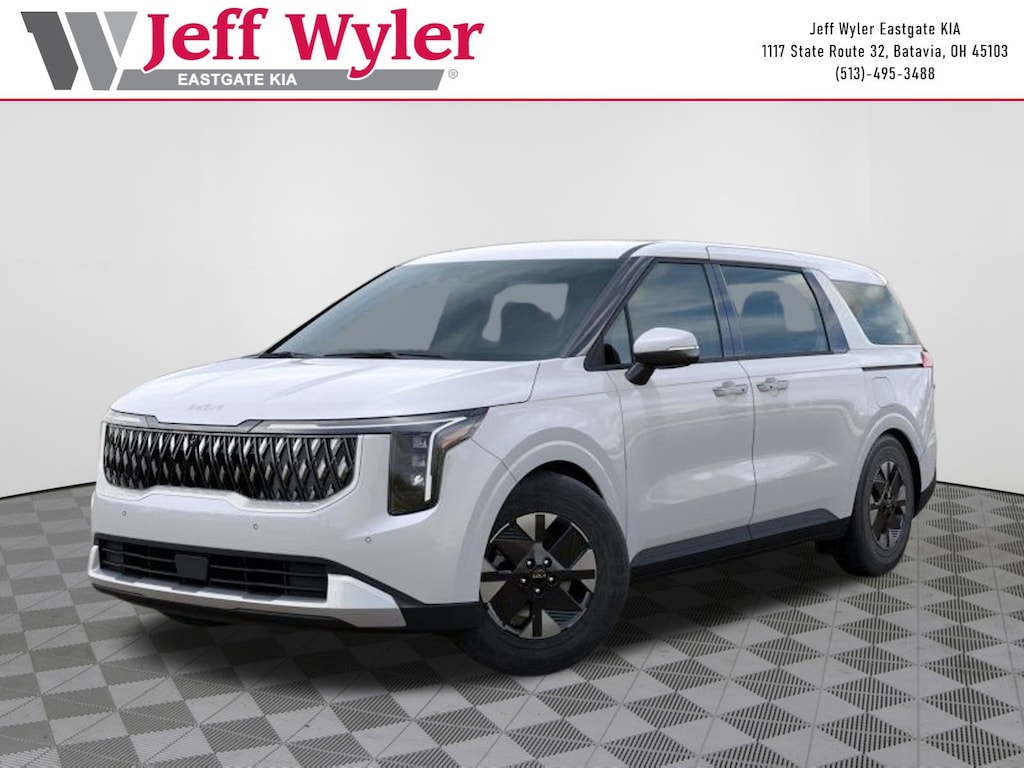 Snow White Pearl 2026 Kia Carnival Hybrid LXS 1.6L I4 DGI Hybrid Turbocharged DOHC 16V LEV3-SULEV30 FWD 6-Speed Automatic 34/31 City/Highway MPG Jeff Wyler Eastgate Auto Mall is excited to offer this beautiful-looking 2026 Kia Carnival Hybrid LXS in Snow White Pearl. Well equipped with: 17" Alloy Wheels, 3rd row seats: split-bench, 4-Wheel Disc Brakes, 6 Speakers, ABS brakes, Air Conditioning, All Weather Floor Mats (8-Passenger), Alloy wheels, AM/FM radio: SiriusXM, Apple CarPlay & Android Auto, Artificial Leather Seat Trim, Auto High-beam Headlights, Auto-Dimming Mirror w/HomeLink, Automatic temperature control, Brake assist, Bumpers: body-color, Compass, Delay-off headlights, Driver door bin, Driver vanity mirror, Dual front impact airbags, Dual front side impact airbags, Electronic Stability Control, Emergency communication system, Exterior Parking Camera Rear, Four wheel independent suspension, Front anti-roll bar, Front Bucket Seats, Front Center Armrest, Front dual zone A/C, Front reading lights, Fully automatic headlights, Heated door mirrors, Heated Front Bucket Seats, Heated front seats, Illuminated entry, Knee airbag, Leather Shift Knob, Leather steering wheel, Low tire pressure warning, Navigation System, Occupant sensing airbag, Outside temperature display, Overhead airbag, Overhead console, Panic alarm, Passenger door bin, Passenger vanity mirror, Power door mirrors, Power driver seat, Power steering, Power windows, Radio: Navigation System w/SiriusXM, Rear air conditioning, Rear anti-roll bar, Rear reading lights, Rear window defroster, Rear window wiper, Reclining 3rd row seat, Remote keyless entry, Security system, Speed control, Speed-sensing steering, Split folding rear seat, Spoiler, Steering wheel mounted audio controls, Tachometer, Telescoping steering wheel, Tilt steering wheel, Traction control, Trip computer, Turn signal indicator mirrors, and Variably intermittent wipers. 34/31 City/Highway MPG