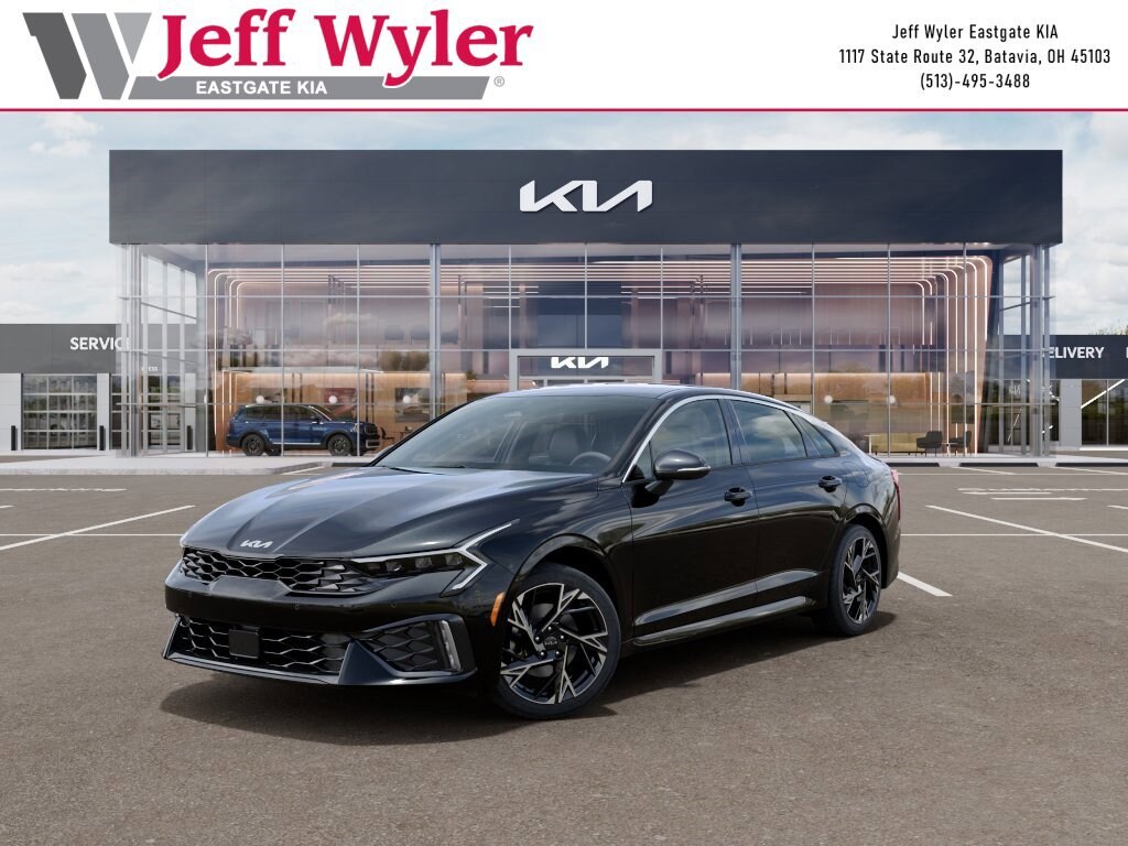 Aurora Black 2026 Kia K5 GT-Line I4 FWD 8-Speed Automatic 25/36 City/Highway MPG Jeff Wyler Eastgate Auto Mall is pumped up to offer this beautiful 2026 Kia K5 GT-Line in Aurora Black. Well equipped with: GT-Line Red Interior Package (SynTex Seat Trim), 4-Wheel Disc Brakes, 6 Speakers, ABS brakes, Air Conditioning, Alloy wheels, AM/FM radio: SiriusXM, Auto High-beam Headlights, Auto-Dimming Mirror with HomeLink, Automatic temperature control, Brake assist, Bumpers: body-color, Carpeted Floor Mats, Delay-off headlights, Driver door bin, Driver vanity mirror, Dual front impact airbags, Dual front side impact airbags, Electronic Stability Control, Emergency communication system: Kia Connect (includes 1 year free trial), Four wheel independent suspension, Front anti-roll bar, Front Bucket Seats, Front Center Armrest, Front dual zone A/C, Front fog lights, Front reading lights, Fully automatic headlights, Heated door mirrors, Heated Front Bucket Seats, Heated front seats, Illuminated entry, Knee airbag, Leather Shift Knob, Leather steering wheel, Low tire pressure warning, Navigation System, Occupant sensing airbag, Outside temperature display, Overhead airbag, Overhead console, Panic alarm, Passenger door bin, Passenger vanity mirror, Power door mirrors, Power driver seat, Power steering, Power windows, Radio data system, Radio: AM/FM Audio System, Rear anti-roll bar, Rear seat center armrest, Rear side impact airbag, Rear window defroster, Remote keyless entry, Security system, Speed control, Speed-sensing steering, Split folding rear seat, Sport steering wheel, Steering wheel mounted audio controls, Tachometer, Telescoping steering wheel, Tilt steering wheel, Traction control, Trip computer, Turn signal indicator mirrors, Variably intermittent wipers, and Wheels: 18" x 7.5J Gloss Black Machined Finish Alloy. 25/36 City/Highway MPG