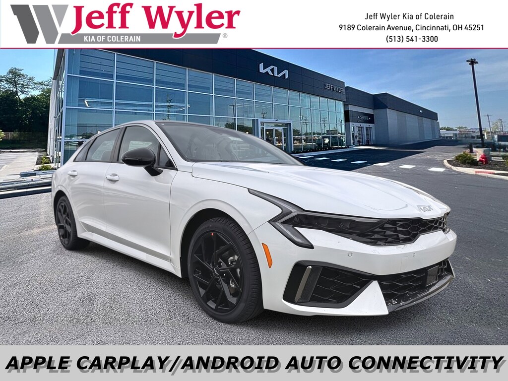 Jeff Wyler Kia of Colerain is proud to offer this good-looking 2026 Kia K5 GT-Line in Snow White Pearl. GT-Line Premium Package (Active Sound Design, Bose Premium Audio, LED Interior Lighting, Panoramic Sunroof, and Wheels: 18" x 7.5J Unique Gloss Black Alloy), 4-Wheel Disc Brakes, 6 Speakers, ABS brakes, Air Conditioning, Alloy wheels, AM/FM radio: SiriusXM, Auto High-beam Headlights, Automatic temperature control, Brake assist, Bumpers: body-color, Carpeted Floor Mats, Delay-off headlights, Driver door bin, Driver vanity mirror, Dual front impact airbags, Dual front side impact airbags, Electronic Stability Control, Emergency communication system: Kia Connect (includes 1 year free trial), Four wheel independent suspension, Front anti-roll bar, Front Bucket Seats, Front Center Armrest, Front dual zone A/C, Front fog lights, Front reading lights, Fully automatic headlights, Heated door mirrors, Heated Front Bucket Seats, Heated front seats, Illuminated entry, Knee airbag, Leather Shift Knob, Leather steering wheel, Low tire pressure warning, Navigation System, Occupant sensing airbag, Outside temperature display, Overhead airbag, Overhead console, Panic alarm, Passenger door bin, Passenger vanity mirror, Power door mirrors, Power driver seat, Power steering, Power windows, Radio data system, Radio: AM/FM Audio System, Rear anti-roll bar, Rear seat center armrest, Rear side impact airbag, Rear window defroster, Remote keyless entry, Security system, Speed control, Speed-sensing steering, Split folding rear seat, Sport steering wheel, Steering wheel mounted audio controls, Tachometer, Telescoping steering wheel, Tilt steering wheel, Traction control, Trip computer, Turn signal indicator mirrors, Variably intermittent wipers, and Wheels: 18" x 7.5J Gloss Black Machined Finish Alloy Our PRE-OWNED vehicles are put through a rigorous 167- POINT QUALITY ASSURANCE INSPECTION along with an average amount of over $1,400.00 SPENT to recondition each vehicle so we can be sure to deliver you the highest quality vehicle like you deserve! ***ONLINE PRICE DOES NOT INCLUDE WYLER FAMILY FIRST PACKAGE***