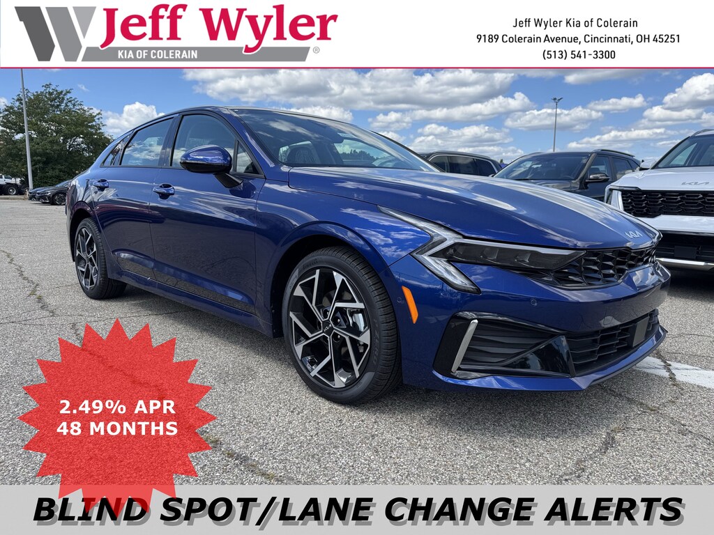 Jeff Wyler Kia of Colerain is pumped up to offer this good-looking 2026 Kia K5 EX in Yacht Blue. 12 Speakers, 4-Wheel Disc Brakes, ABS brakes, Air Conditioning, Alloy wheels, AM/FM radio: SiriusXM, Auto High-beam Headlights, Automatic temperature control, Brake assist, Bumpers: body-color, Delay-off headlights, Driver door bin, Driver vanity mirror, Dual front impact airbags, Dual front side impact airbags, Electronic Stability Control, Emergency communication system: Kia Connect (includes 1 year free trial), Four wheel independent suspension, Front anti-roll bar, Front Bucket Seats, Front Center Armrest, Front dual zone A/C, Front reading lights, Fully automatic headlights, Heated & Ventilated Front Bucket Seats, Heated door mirrors, Heated front seats, Heated steering wheel, Illuminated entry, Knee airbag, Leather Shift Knob, Leather steering wheel, Low tire pressure warning, Memory seat, Navigation System, Occupant sensing airbag, Outside temperature display, Overhead airbag, Overhead console, Panic alarm, Passenger door bin, Passenger vanity mirror, Power door mirrors, Power driver seat, Power moonroof, Power passenger seat, Power steering, Power windows, Radio data system, Radio: AM/FM Audio System, Rear anti-roll bar, Rear reading lights, Rear seat center armrest, Rear side impact airbag, Rear window defroster, Remote keyless entry, Security system, Speed control, Speed-sensing steering, Split folding rear seat, Steering wheel mounted audio controls, SynTex Seat Trim, Tachometer, Telescoping steering wheel, Tilt steering wheel, Traction control, Trip computer, Turn signal indicator mirrors, Variably intermittent wipers, Ventilated front seats, and Wheels: 18" x 7.5J Gloss Black Machined Finish Alloy Our PRE-OWNED vehicles are put through a rigorous 167- POINT QUALITY ASSURANCE INSPECTION along with an average amount of over $1,400.00 SPENT to recondition each vehicle so we can be sure to deliver you the highest quality vehicle like you deserve! ***ONLINE PRICE DOES NOT INCLUDE WYLER FAMILY FIRST PACKAGE***