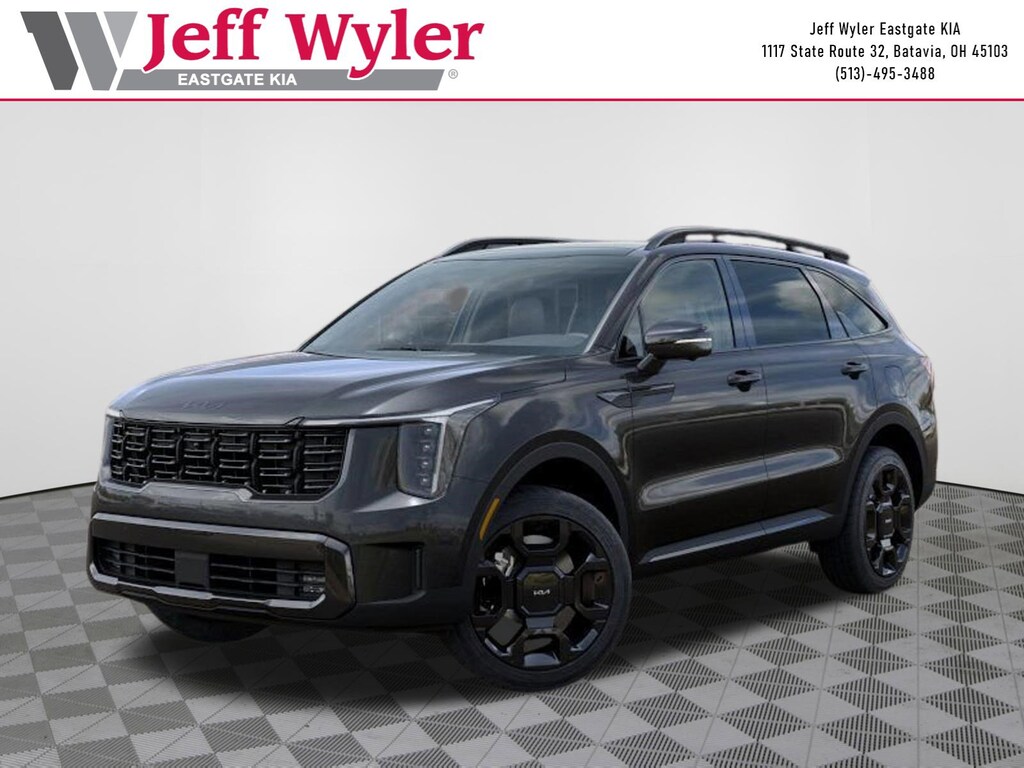 Interstellar Gr 2026 Kia Sorento Hybrid X-Line SX Prestige 1.6L Turbo GDI 4-Cylinder AWD 6-Speed Automatic 32/35 City/Highway MPG Jeff Wyler Eastgate Auto Mall is honored to offer this great-looking 2026 Kia Sorento Hybrid X-Line SX Prestige in Interstellar Gr. Well equipped with: 12 Speakers, 3rd row seats: split-bench, 4-Wheel Disc Brakes, ABS brakes, Air Conditioning, All Weather Floor Mats, Alloy wheels, AM/FM radio: SiriusXM, Apple CarPlay & Android Auto, Auto High-beam Headlights, Auto-dimming Rear-View mirror, Automatic temperature control, Brake assist, Bumpers: body-color, Delay-off headlights, Driver door bin, Driver vanity mirror, Dual front impact airbags, Dual front side impact airbags, Electronic Stability Control, Emergency communication system: 911 Connect, Exterior Parking Camera Rear, Four wheel independent suspension, Front anti-roll bar, Front Bucket Seats, Front Center Armrest, Front dual zone A/C, Front fog lights, Front reading lights, Fully automatic headlights, Garage door transmitter: HomeLink, Heated and Ventilated Front Bucket Seats, Heated door mirrors, Heated front seats, Heated rear seats, Heated steering wheel, Illuminated entry, Knee airbag, Leather steering wheel, Low tire pressure warning, Memory seat, Navigation System, Occupant sensing airbag, Outside temperature display, Overhead airbag, Overhead console, Panic alarm, Passenger door bin, Passenger vanity mirror, Perforated Genuine Leather Seat Trim, Power door mirrors, Power driver seat, Power Liftgate, Power moonroof, Power passenger seat, Power steering, Power windows, Radio data system, Radio: AM/FM/SiriusXM Audio System, Rain sensing wipers, Rear anti-roll bar, Rear reading lights, Rear side impact airbag, Rear window defroster, Rear window wiper, Remote keyless entry, Security system, Speed control, Speed-sensing steering, Split folding rear seat, Spoiler, Steering wheel mounted audio controls, Tachometer, Telescoping steering wheel, Tilt steering wheel, Traction control, Trip computer, Turn signal indicator mirrors, Variably intermittent wipers, Ventilated front seats, and Wheels: 19" Machine-Finished Aero Alloy. 32/35 City/Highway MPG Price includes: $2500 - Kia Customer Cash. Exp. 03/31/2026