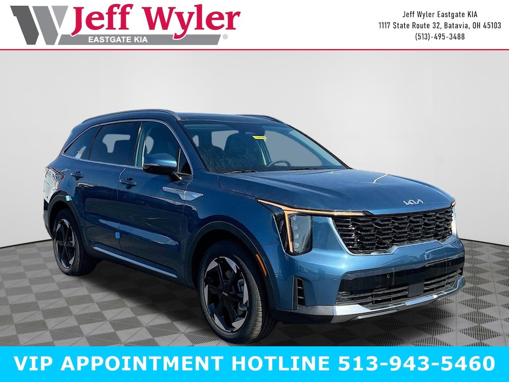 Priced below KBB Fair Purchase Price! Mineral Blue 2026 Kia Sorento Plug-In Hybrid EX 1.6L I4 DGI Hybrid Turbocharged DOHC 16V LEV3-SULEV30 AWD 6-Speed Automatic Jeff Wyler Eastgate Auto Mall is honored to offer this outstanding 2026 Kia Sorento Plug-In Hybrid EX in Mineral Blue. Well equipped with: EX Premium Package (2nd Row Captain's Chairs, LED Interior Lighting, Power Sunroof with Power Sunshade, and Radio: AM/FM Bose Premium Audio System), 3rd row seats: split-bench, 4-Wheel Disc Brakes, 6 Speakers, ABS brakes, Air Conditioning, Alloy wheels, AM/FM radio: SiriusXM, Apple CarPlay & Android Auto, Auto High-beam Headlights, Auto-dimming Rear-View mirror, Automatic temperature control, Brake assist, Bumpers: body-color, Cargo Cover, Carpeted Floor Mats, Delay-off headlights, Driver door bin, Driver vanity mirror, Dual front impact airbags, Dual front side impact airbags, Electronic Stability Control, Emergency communication system: 911 Connect, Exterior Parking Camera Rear, Four wheel independent suspension, Front anti-roll bar, Front Bucket Seats, Front Center Armrest, Front dual zone A/C, Front fog lights, Front reading lights, Fully automatic headlights, Heated door mirrors, Heated Front Bucket Seats, Heated front seats, Illuminated entry, Knee airbag, Leather steering wheel, Low tire pressure warning, Navigation System, Occupant sensing airbag, Outside temperature display, Overhead airbag, Overhead console, Panic alarm, Passenger door bin, Passenger vanity mirror, Power door mirrors, Power driver seat, Power Liftgate, Power passenger seat, Power steering, Power windows, Radio data system, Radio: AM/FM/SiriusXM Audio System, Rear anti-roll bar, Rear reading lights, Rear seat center armrest, Rear side impact airbag, Rear window defroster, Rear window wiper, Remote keyless entry, Roadside Assistance Kit, Security system, Speed control, Speed-sensing steering, Split folding rear seat, Spoiler, Steering wheel mounted audio controls, SynTex Artificial Leather Seat Trim, Tachometer, Telescoping steering wheel, Tilt steering wheel, Traction control, Trip computer, Turn signal indicator mirrors, Variably intermittent wipers, and Wheels: 19" Machine-Finished Aero Alloy. Price includes: $3500 - Kia Customer Cash. Exp. 05/04/2026