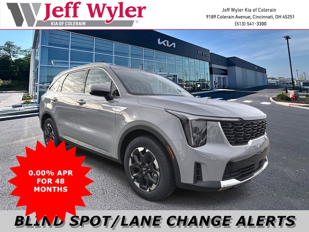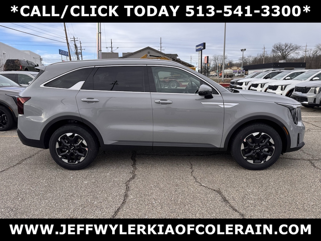 Jeff Wyler Kia of Colerain is honored to offer this attractive 2026 Kia Sorento S in Wolf Gray. S Panoramic Sunroof Package (Full-Length One-Touch Panoroof w/Sliding Sunshade and LED Interior Lighting), 3rd row seats: split-bench, 4-Wheel Disc Brakes, 6 Speakers, ABS brakes, Air Conditioning, Alloy wheels, AM/FM radio: SiriusXM, Apple CarPlay & Android Auto, Auto High-beam Headlights, Automatic temperature control, Brake assist, Bumpers: body-color, Carpeted Floor Mats, Delay-off headlights, Driver door bin, Driver vanity mirror, Dual front impact airbags, Dual front side impact airbags, Electronic Stability Control, Emergency communication system: 911 Connect, Exterior Parking Camera Rear, Four wheel independent suspension, Front anti-roll bar, Front Bucket Seats, Front Center Armrest, Front dual zone A/C, Front reading lights, Fully automatic headlights, Heated door mirrors, Heated Front Bucket Seats, Heated front seats, Illuminated entry, Knee airbag, Leather Shift Knob, Leather steering wheel, Low tire pressure warning, Occupant sensing airbag, Outside temperature display, Overhead airbag, Overhead console, Panic alarm, Passenger door bin, Passenger vanity mirror, Power door mirrors, Power driver seat, Power steering, Power windows, Radio data system, Radio: AM/FM Standard Sound System, Rear anti-roll bar, Rear reading lights, Rear seat center armrest, Rear side impact airbag, Rear window defroster, Rear window wiper, Remote keyless entry, Security system, Speed control, Speed-sensing steering, Split folding rear seat, Spoiler, Steering wheel mounted audio controls, SynTex Artificial Leather Seat Trim, Tachometer, Telescoping steering wheel, Tilt steering wheel, Traction control, Trip computer, Turn signal indicator mirrors, Variably intermittent wipers, and Wheels: 18" Gloss Black Alloy Our PRE-OWNED vehicles are put through a rigorous 167- POINT QUALITY ASSURANCE INSPECTION along with an average amount of over $1,400.00 SPENT to recondition each vehicle so we can be sure to deliver you the highest quality vehicle like you deserve! ***ONLINE PRICE DOES NOT INCLUDE WYLER FAMILY FIRST PACKAGE***