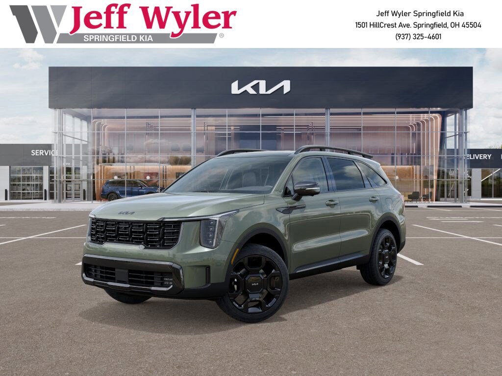 Priced below KBB Fair Purchase Price! Jeff Wyler Springfield Auto Mall is delighted to offer this stunning 2026 Kia Sorento X-Line SX Prestige in Jungle Green. Well equipped with: Olive Brown Leather Package, 12 Speakers, 3rd row seats: split-bench, 4-Wheel Disc Brakes, ABS brakes, Air Conditioning, Alloy wheels, AM/FM radio: SiriusXM, Apple CarPlay & Android Auto, Auto High-beam Headlights, Auto-dimming Rear-View mirror, Automatic temperature control, Brake assist, Bumpers: body-color, Carpeted Floor Mats, Delay-off headlights, Driver door bin, Driver vanity mirror, Dual front impact airbags, Dual front side impact airbags, Electronic Stability Control, Emergency communication system: 911 Connect, Exterior Parking Camera Rear, Four wheel independent suspension, Front anti-roll bar, Front Bucket Seats, Front Center Armrest, Front dual zone A/C, Front fog lights, Front reading lights, Front Skid Plate, Fully automatic headlights, Garage door transmitter: HomeLink, Heated and Ventilated Front Bucket Seats, Heated door mirrors, Heated front seats, Heated rear seats, Heated steering wheel, Illuminated entry, Knee airbag, Leather Shift Knob, Leather steering wheel, Low tire pressure warning, Memory seat, Navigation System, Occupant sensing airbag, Outside temperature display, Overhead airbag, Overhead console, Panic alarm, Passenger door bin, Passenger vanity mirror, Perforated Genuine Leather Seat Trim, Power door mirrors, Power driver seat, Power Liftgate, Power moonroof, Power passenger seat, Power steering, Power windows, Radio data system, Radio: AM/FM Bose Premium Audio System, Rain sensing wipers, Rear anti-roll bar, Rear reading lights, Rear side impact airbag, Rear window defroster, Rear window wiper, Remote keyless entry, Security system, Speed control, Speed-sensing steering, Split folding rear seat, Spoiler, Steering wheel mounted audio controls, Tachometer, Telescoping steering wheel, Tilt steering wheel, Traction control, Trip computer, Turn signal indicator mirrors, Variably intermittent wipers, Ventilated front seats, and Wheels: 20" x 8.5J Gloss Black X-Line Alloy. 20/27 City/Highway MPG 20/27 City/Highway MPGWyler Family First Package Includes: NanoCure Appearance Protection: Exterior & Interior Chemical Sealant Applied to Protect Against Environmental Hazards (7 Year Warranty Coverage). Pulse- Rear end Collision Avoidance System Theft Deterrent Strategy gives you 5 Years of Coverage against vehicle Theft, Offering up to a $5,000 benefit. Available Incentives: $2500 - Kia Customer Cash. Exp. 05/04/2026
