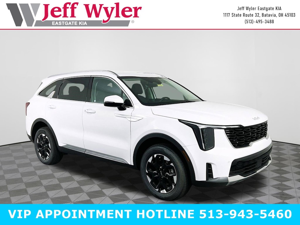 Priced below KBB Fair Purchase Price! Glacial White Pearl 2026 Kia Sorento S 2.5L I4 DGI DOHC 16V LEV3-SULEV30 191hp AWD 8-Speed Automatic 23/28 City/Highway MPG Jeff Wyler Eastgate Auto Mall is pumped up to offer this outstanding-looking 2026 Kia Sorento S in Glacial White Pearl. Well equipped with: 3rd row seats: split-bench, 4-Wheel Disc Brakes, 6 Speakers, ABS brakes, Air Conditioning, Alloy wheels, AM/FM radio: SiriusXM, Apple CarPlay & Android Auto, Auto High-beam Headlights, Automatic temperature control, Brake assist, Bumpers: body-color, Carpeted Floor Mats, Delay-off headlights, Driver door bin, Driver vanity mirror, Dual front impact airbags, Dual front side impact airbags, Electronic Stability Control, Emergency communication system: 911 Connect, Exterior Parking Camera Rear, Four wheel independent suspension, Front anti-roll bar, Front Bucket Seats, Front Center Armrest, Front dual zone A/C, Front reading lights, Fully automatic headlights, Heated door mirrors, Heated Front Bucket Seats, Heated front seats, Illuminated entry, Knee airbag, Leather Shift Knob, Leather steering wheel, Low tire pressure warning, Occupant sensing airbag, Outside temperature display, Overhead airbag, Overhead console, Panic alarm, Passenger door bin, Passenger vanity mirror, Power door mirrors, Power driver seat, Power steering, Power windows, Radio data system, Radio: AM/FM Standard Sound System, Rear anti-roll bar, Rear reading lights, Rear seat center armrest, Rear side impact airbag, Rear window defroster, Rear window wiper, Remote keyless entry, Security system, Speed control, Speed-sensing steering, Split folding rear seat, Spoiler, Steering wheel mounted audio controls, SynTex Artificial Leather Seat Trim, Tachometer, Telescoping steering wheel, Tilt steering wheel, Traction control, Trip computer, Turn signal indicator mirrors, Variably intermittent wipers, and Wheels: 18" Gloss Black Alloy. 23/28 City/Highway MPG Price includes: $2500 - Kia Customer Cash. Exp. 03/31/2026