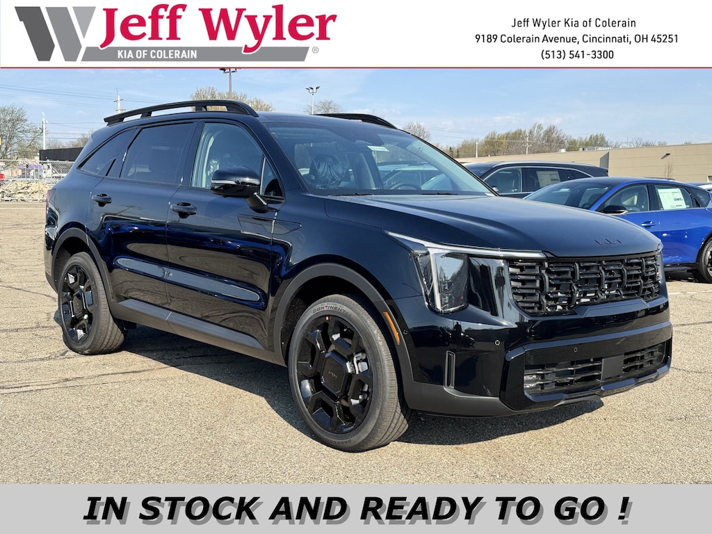 Jeff Wyler Kia of Colerain is excited to offer this beautiful-looking 2026 Kia Sorento X-Line SX in Ebony Black. 12 Speakers, 3rd row seats: split-bench, 4-Wheel Disc Brakes, ABS brakes, Air Conditioning, Alloy wheels, AM/FM radio: SiriusXM, Apple CarPlay & Android Auto, Auto High-beam Headlights, Auto-dimming Rear-View mirror, Automatic temperature control, Brake assist, Bumpers: body-color, Cargo Cover, Carpeted Floor Mats, Delay-off headlights, Driver door bin, Driver vanity mirror, Dual front impact airbags, Dual front side impact airbags, Electronic Stability Control, Emergency communication system: 911 Connect, Exterior Parking Camera Rear, Four wheel independent suspension, Front anti-roll bar, Front Bucket Seats, Front Center Armrest, Front dual zone A/C, Front fog lights, Front reading lights, Fully automatic headlights, Garage door transmitter: HomeLink, Heated and Ventilated Front Bucket Seats, Heated door mirrors, Heated front seats, Heated steering wheel, Illuminated entry, Knee airbag, Leather Shift Knob, Leather steering wheel, Low tire pressure warning, Navigation System, Occupant sensing airbag, Outside temperature display, Overhead airbag, Overhead console, Panic alarm, Passenger door bin, Passenger vanity mirror, Power door mirrors, Power driver seat, Power Liftgate, Power moonroof, Power passenger seat, Power steering, Power windows, Radio data system, Radio: AM/FM Bose Premium Audio System, Rain sensing wipers, Rear anti-roll bar, Rear reading lights, Rear side impact airbag, Rear window defroster, Rear window wiper, Remote keyless entry, Security system, Speed control, Speed-sensing steering, Split folding rear seat, Spoiler, Steering wheel mounted audio controls, SynTex Artificial Leather Seat Trim, Tachometer, Telescoping steering wheel, Tilt steering wheel, Traction control, Trip computer, Turn signal indicator mirrors, Variably intermittent wipers, Ventilated front seats, and Wheels: 20" x 8.5J Gloss Black X-Line Alloy Our PRE-OWNED vehicles are put through a rigorous 167- POINT QUALITY ASSURANCE INSPECTION along with an average amount of over $1,400.00 SPENT to recondition each vehicle so we can be sure to deliver you the highest quality vehicle like you deserve! ***ONLINE PRICE DOES NOT INCLUDE WYLER FAMILY FIRST PACKAGE***
