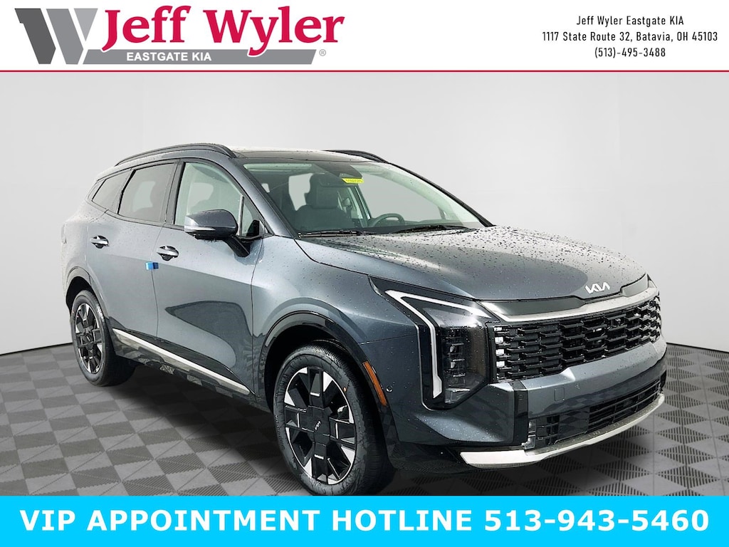 Gravity Gray 2026 Kia Sportage Hybrid SX-Prestige 1.6L Turbo GDI 4-Cylinder AWD 6-Speed Automatic 35/36 City/Highway MPG Jeff Wyler Eastgate Auto Mall is very proud to offer this charming 2026 Kia Sportage Hybrid SX-Prestige in Gravity Gray. Well equipped with: 4-Wheel Disc Brakes, 8 Speakers, ABS brakes, Air Conditioning, All Weather Floor Mats, Alloy wheels, AM/FM radio: SiriusXM, Auto High-beam Headlights, Auto-Dimming Mirror with HomeLink, Automatic temperature control, Brake assist, Bumpers: body-color, Compass, Delay-off headlights, Driver door bin, Driver vanity mirror, Dual front impact airbags, Dual front side impact airbags, Electronic Stability Control, Emergency communication system, Four wheel independent suspension, Front anti-roll bar, Front Bucket Seats, Front Center Armrest, Front dual zone A/C, Front fog lights, Front reading lights, Fully automatic headlights, harman/kardon® Speakers, Heated and Ventilated Front Bucket Seats, Heated door mirrors, Heated front seats, Heated steering wheel, Illuminated entry, Leather steering wheel, Low tire pressure warning, Memory seat, Navigation System, Occupant sensing airbag, Outside temperature display, Overhead airbag, Overhead console, Panic alarm, Passenger door bin, Passenger vanity mirror, Power door mirrors, Power driver seat, Power Liftgate, Power moonroof, Power passenger seat, Power steering, Power windows, Radio: AM/FM/HD Premium Audio System, Rain sensing wipers, Rear anti-roll bar, Rear reading lights, Rear seat center armrest, Rear side impact airbag, Rear window defroster, Rear window wiper, Remote keyless entry, Security system, Speed control, Speed-sensing steering, Split folding rear seat, Spoiler, Steering wheel mounted audio controls, Syntex Premium Leatherette Seat Trim, Tachometer, Telescoping steering wheel, Tilt steering wheel, Traction control, Trip computer, Turn signal indicator mirrors, Variably intermittent wipers, Ventilated front seats, and Wheels: 19" x 7.5J Alloy. 35/36 City/Highway MPG