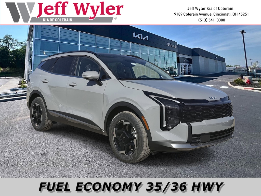 Jeff Wyler Kia of Colerain is excited to offer this outstanding-looking 2026 Kia Sportage Hybrid EX in Wolf Gray. EX Panoramic Sunroof Package (LED Interior Lighting and Panoramic Sunroof), 4-Wheel Disc Brakes, 6 Speakers, ABS brakes, Air Conditioning, Alloy wheels, Auto High-beam Headlights, Automatic temperature control, Brake assist, Bumpers: body-color, Carpeted Floor Mats, Delay-off headlights, Driver door bin, Driver vanity mirror, Dual front impact airbags, Dual front side impact airbags, Electronic Stability Control, Emergency communication system, Four wheel independent suspension, Front anti-roll bar, Front Bucket Seats, Front Center Armrest, Front dual zone A/C, Fully automatic headlights, Heated door mirrors, Heated Front Bucket Seats, Heated front seats, Illuminated entry, Leather steering wheel, Low tire pressure warning, Occupant sensing airbag, Outside temperature display, Overhead airbag, Overhead console, Panic alarm, Passenger door bin, Passenger vanity mirror, Power door mirrors, Power driver seat, Power Liftgate, Power steering, Power windows, Radio: AM/FM/HD Audio System, Rain sensing wipers, Rear anti-roll bar, Rear seat center armrest, Rear side impact airbag, Rear window defroster, Rear window wiper, Remote keyless entry, Security system, Speed control, Speed-sensing steering, Split folding rear seat, Spoiler, Steering wheel mounted audio controls, Syntex Leatherette Seat Trim, Tachometer, Telescoping steering wheel, Tilt steering wheel, Traction control, Trip computer, Turn signal indicator mirrors, Variably intermittent wipers, and Wheels: 18" x 7.5J Machined Alloy Our PRE-OWNED vehicles are put through a rigorous 167- POINT QUALITY ASSURANCE INSPECTION along with an average amount of over $1,400.00 SPENT to recondition each vehicle so we can be sure to deliver you the highest quality vehicle like you deserve! ***ONLINE PRICE DOES NOT INCLUDE WYLER FAMILY FIRST PACKAGE***