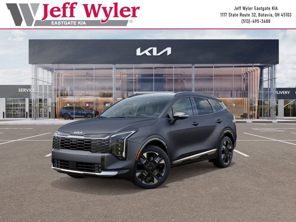 Shadow Matte Gray 2026 Kia Sportage Hybrid SX-Prestige 1.6L Turbo GDI 4-Cylinder AWD 6-Speed Automatic 35/36 City/Highway MPG Jeff Wyler Eastgate Auto Mall is honored to offer this gorgeous 2026 Kia Sportage Hybrid SX-Prestige in Shadow Matte Gray. Well equipped with: Carmine Red Interior Color Package, 4-Wheel Disc Brakes, 8 Speakers, ABS brakes, Air Conditioning, Alloy wheels, AM/FM radio: SiriusXM, Auto High-beam Headlights, Auto-Dimming Mirror with HomeLink, Automatic temperature control, Brake assist, Bumpers: body-color, Compass, Delay-off headlights, Driver door bin, Driver vanity mirror, Dual front impact airbags, Dual front side impact airbags, Electronic Stability Control, Emergency communication system, Four wheel independent suspension, Front anti-roll bar, Front Bucket Seats, Front Center Armrest, Front dual zone A/C, Front fog lights, Front reading lights, Fully automatic headlights, harman/kardon® Speakers, Heated and Ventilated Front Bucket Seats, Heated door mirrors, Heated front seats, Heated steering wheel, Illuminated entry, Leather steering wheel, Low tire pressure warning, Memory seat, Navigation System, Occupant sensing airbag, Outside temperature display, Overhead airbag, Overhead console, Panic alarm, Passenger door bin, Passenger vanity mirror, Power door mirrors, Power driver seat, Power Liftgate, Power moonroof, Power passenger seat, Power steering, Power windows, Radio: AM/FM/HD Premium Audio System, Rain sensing wipers, Rear anti-roll bar, Rear reading lights, Rear seat center armrest, Rear side impact airbag, Rear window defroster, Rear window wiper, Remote keyless entry, Security system, Speed control, Speed-sensing steering, Split folding rear seat, Spoiler, Steering wheel mounted audio controls, Syntex Premium Leatherette Seat Trim, Tachometer, Telescoping steering wheel, Tilt steering wheel, Traction control, Trip computer, Turn signal indicator mirrors, Variably intermittent wipers, Ventilated front seats, and Wheels: 19" x 7.5J Alloy. 35/36 City/Highway MPG