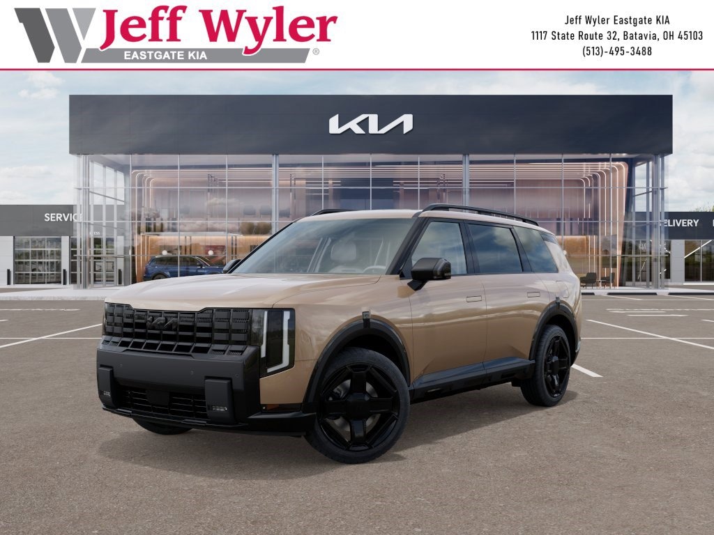 Terrain Brown 2027 Kia Telluride X-Line EX 2.5L I4 DGI Turbocharged DOHC 16V LEV3-SULEV30 274hp AWD 8-Speed Automatic Jeff Wyler Eastgate Auto Mall is delighted to offer this stunning 2027 Kia Telluride X-Line EX in Terrain Brown. Well equipped with: 3rd row seats: split-bench, 4-Wheel Disc Brakes, 8 Speakers, ABS brakes, Air Conditioning, Alloy wheels, AM/FM radio: SiriusXM, Apple CarPlay & Android Auto, Auto High-beam Headlights, Auto-Dimming Mirror with HomeLink (PnP), Auto-dimming Rear-View mirror, Auto-leveling suspension, Automatic temperature control, Brake assist, Bumpers: body-color, Carpeted Floor Mats, Compass, Delay-off headlights, Driver door bin, Driver vanity mirror, Dual front impact airbags, Dual front side impact airbags, Electronic Stability Control, Emergency communication system: 911 Connect, Exterior Parking Camera Rear, Four wheel independent suspension, Front anti-roll bar, Front Bucket Seats, Front Center Armrest, Front dual zone A/C, Front reading lights, Fully automatic headlights, Heated and Ventilated Front Bucket Seats, Heated door mirrors, Heated front seats, Heated steering wheel, Illuminated entry, Knee airbag, Low tire pressure warning, Navigation System, Occupant sensing airbag, Outside temperature display, Overhead airbag, Overhead console, Panic alarm, Passenger door bin, Passenger vanity mirror, Power door mirrors, Power driver seat, Power Liftgate, Power moonroof, Power passenger seat, Power steering, Power windows, Radio data system, Radio: AM/FM Display Audio System, Rear air conditioning, Rear anti-roll bar, Rear reading lights, Rear side impact airbag, Rear window defroster, Rear window wiper, Reclining 3rd row seat, Remote keyless entry, Security system, Speed control, Speed-sensing steering, Split folding rear seat, Spoiler, Steering wheel mounted audio controls, SynTex Seat Trim, Tachometer, Telescoping steering wheel, Tilt steering wheel, Traction control, Trip computer, Turn signal indicator mirrors, Variably intermittent wipers, Ventilated front seats, and Wheels: 21" x 8" X-LINE Exclusive Type An Alloy.