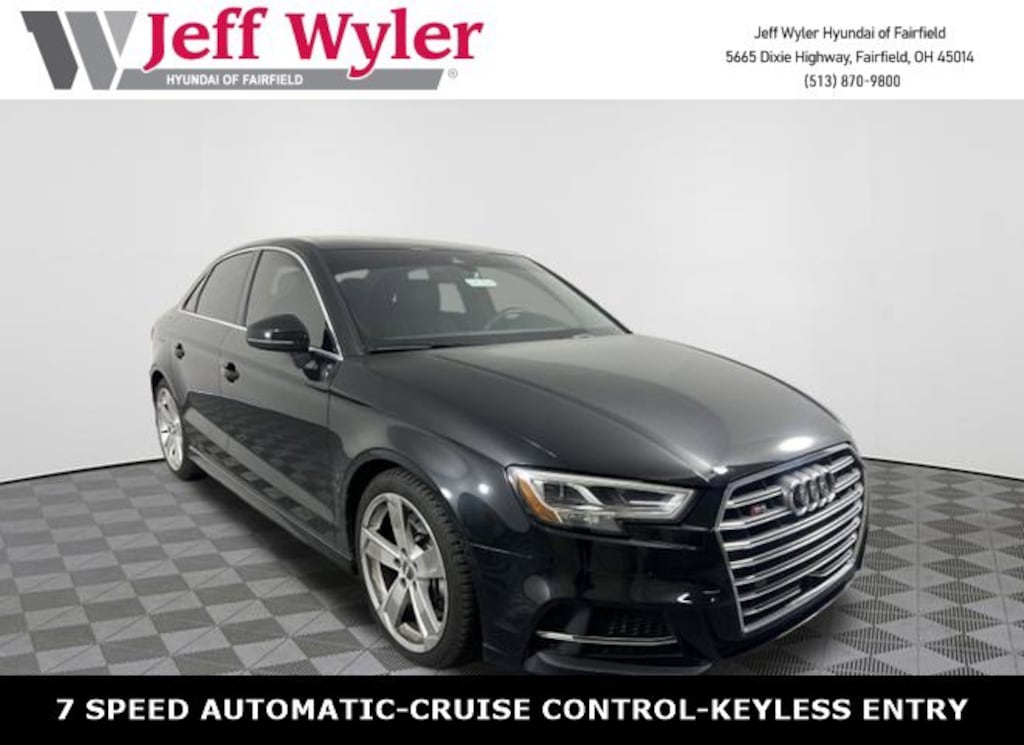 Clean CARFAX. Jeff Wyler Hyundai of Fairfield is proud to offer this good-looking 2020 Audi S3 2.0T Premium Plus in Black Metallic. Well equipped with: Interior Storage Package w/Rear USB Ports, Navigation Package, Premium Plus Package (8-Way Power Front Seats w/4-Way Power Lumbar, Auto-Dimming Rear-View Mirror w/Compass, Camera Distance Sensor, Heated Auto-Dimming Power Folding Exterior Mirrors, and High Beam Assist), Side & Rear Cross Traffic Assist Package (Audi Parking System w/Front/Rear Acoustic Sensors and Audi Side Assist w/Rear Cross Traffic Assist), Android Auto, Apple CarPlay, CALL NOW FOR YOUR VIP APPOINTMENT 513-870-9800, FULLY SERVICED w/RECORDS, GUARANTEED FINANCING!! NO MATTER YOUR SITUATION WE CAN GET AN APPROVAL!!, THE #1 Volume dealer in the region! Come see why for yourself Today!!, WE PAY MORE FOR YOUR TRADE!!, 10 Speakers, 4-Wheel Disc Brakes, ABS brakes, Air Conditioning, Alloy wheels, AM/FM radio: SiriusXM, Audi Beam-Rings (DISC), Audi Guard All Weather Floor Mats, Audi smartphone interface (Apple CarPlay/Android Auto), Audi Sport Carbon Fiber Inlays, Automatic temperature control, Brake assist, Bumpers: body-color, CD player, Compass, Delay-off headlights, Driver door bin, Driver vanity mirror, Dual front impact airbags, Dual front side impact airbags, Electronic Stability Control, Exterior Parking Camera Rear, Four wheel independent suspension, Front anti-roll bar, Front Bucket Seats, Front Center Armrest, Front dual zone A/C, Front fog lights, Front reading lights, Front Sport Seats, Grocery Hooks, Headlight cleaning, Heated door mirrors, Heated front seats, HomeLink - Black (DISC), Illuminated entry, Knee airbag, Leather Seating Surfaces, Leather Shift Knob, Leather steering wheel, Low tire pressure warning, Occupant sensing airbag, Outside temperature display, Overhead airbag, Panic alarm, Passenger door bin, Passenger vanity mirror, Power door mirrors, Power driver seat, Power moonroof, Power steering, Power windows, Radio data system, Radio: Audi Concert AM/FM/CD/SAT, Rain sensing wipers, Rear anti-roll bar, Rear fog lights, Rear reading lights, Rear seat center armrest, Rear window defroster, Remote keyless entry, Security system, Speed control, Speed-sensing steering, Speed-Sensitive Wipers, Split folding rear seat, Spoiler, Sport steering wheel, Steering wheel mounted audio controls, Tachometer, Telescoping steering wheel, Tilt steering wheel, Traction control, Trip computer, Turn signal indicator mirrors, Variably intermittent wipers, and Wheels: 18" 5-Arm-Dynamic Design. TO CHECK ON THE AVAILABILITY OF THIS VEHICLE REACH OUT TO ONE OF OUR TEAM MEMBERS!! ALSO SHOP ONLINE AT https://www.jeffwylerhyundaioffairfield.com/ Proudly Serving: Cincinnati, Dayton, Columbus, Louisville, Lexington, Indianapolis, Hamilton, Florence, Alexandria, Beavercreek, Springdale, West Chester, Monroe, Fairfield, Kenwood, Newport and all of greater Cincinnati Ohio, Indiana, and Northern Kentucky. New Price!
