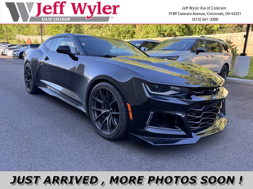 Jeff Wyler Kia of Colerain is proud to offer this stunning 2017 Chevrolet Camaro ZL1 in Black. Preferred Equipment Group ZL1, 2 USB Ports & Auxiliary Input Jack, 4-Wheel Disc Brakes, 9 Speakers, ABS brakes, Adaptive suspension, Air Conditioning, Alloy wheels, AM/FM radio: SiriusXM, Apple CarPlay/Android Auto, Auto-dimming door mirrors, Auto-dimming Rear-View mirror, Automatic temperature control, Bose Premium 9-Speaker Audio System Feature, Brake assist, Bumpers: body-color, Compass, Delay-off headlights, Driver door bin, Driver vanity mirror, Dual front impact airbags, Dual front side impact airbags, Electronic Stability Control, Emergency communication system, Exposed Carbon Fiber Weave Hood Insert, Exterior Parking Camera Rear, Four wheel independent suspension, Front anti-roll bar, Front Bucket Seats, Front Center Armrest, Front dual zone A/C, Front fog lights, Front License Plate Bracket, Front reading lights, Fully automatic headlights, Garage door transmitter, Heads-Up Display, Heated door mirrors, Heated front seats, Heated steering wheel, High-Intensity Discharge Headlights, Illuminated entry, Knee airbag, Leather-Trimmed Seat Trim w/Sueded Inserts, Low tire pressure warning, Memory seat, Occupant sensing airbag, Outside temperature display, Overhead airbag, Panic alarm, Passenger door bin, Passenger vanity mirror, Power door mirrors, Power driver seat, Power passenger seat, Power steering, Power windows, Premium audio system: Chevrolet MyLink, Radio data system, Radio: Chevrolet MyLink Audio System, Rear anti-roll bar, Rear window defroster, RECARO Performance Front Bucket Seats, Remote keyless entry, Security system, SiriusXM Satellite Radio, Speed control, Speed-sensing steering, Spoiler, Sport steering wheel, Steering wheel mounted audio controls, Tachometer, Telescoping steering wheel, Tilt steering wheel, Traction control, Trip computer, Variably intermittent wipers, Ventilated front seats, Voltmeter, and Wheels: 20" x 10" Fr & 20" x 11" Rr Dark Graphite Our PRE-OWNED vehicles are put through a rigorous 167- POINT QUALITY ASSURANCE INSPECTION along with an average amount of over $1,400.00 SPENT to recondition each vehicle so we can be sure to deliver you the highest quality vehicle like you deserve! ***ONLINE PRICE DOES NOT INCLUDE WYLER FAMILY FIRST PACKAGE***