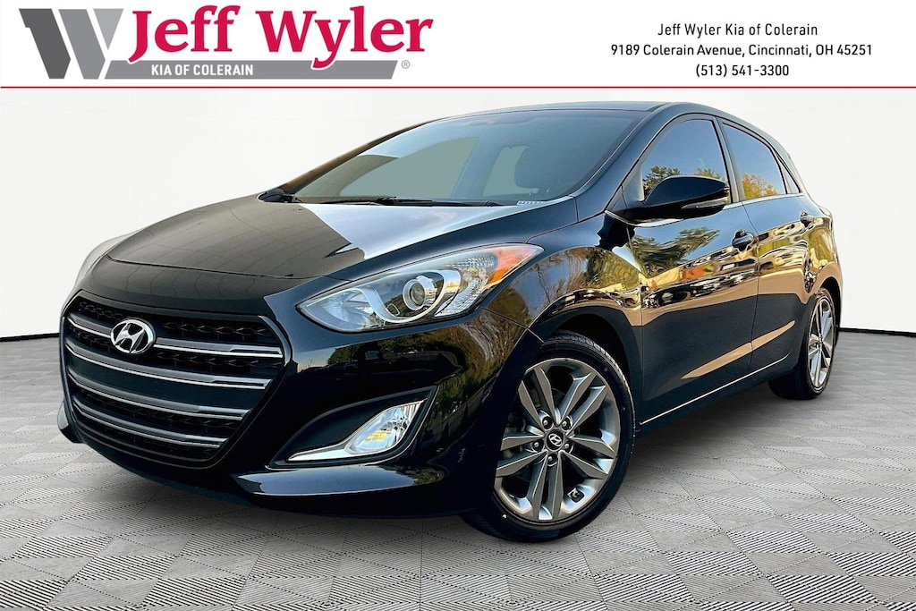 Jeff Wyler Kia of Colerain is excited to offer this fantastic 2016 Hyundai Elantra GT in Black Noir Pearl. Style Package (10-Way Power Driver's Seat w/Power Lumbar, 17" x 7.0J Alloy Wheels, Aluminum Pedals, Blue Link Telematics System, Driver-Side Auto Up Window, Front Fog Lights, Heated Side Mirrors w/Integrated Turn Signals, Leather Wrapped Steering Wheel & Shift Knob, Leatherette Door Trim Inserts, Proximity Key Entry w/Electronic Push Button Start, Rear Hidden Cargo-Area Storage Compartment, and Sport-Tuned Suspension), 16" x 6.5J Steel Wheels w/Covers, 4-Wheel Disc Brakes, 6 Speakers, ABS brakes, Air Conditioning, AM/FM radio, Brake assist, Bumpers: body-color, Cargo Net, Cargo Tray, Carpeted Floor Mats, CD player, Delay-off headlights, Driver door bin, Driver vanity mirror, Dual front impact airbags, Dual front side impact airbags, Electronic Stability Control, Front anti-roll bar, Front Bucket Seats, Front Center Armrest, Front reading lights, Front wheel independent suspension, Heated door mirrors, Heated Front Bucket Seats, Heated front seats, Illuminated entry, Knee airbag, Low tire pressure warning, Occupant sensing airbag, Option Group 02, Outside temperature display, Overhead airbag, Overhead console, Panic alarm, Passenger door bin, Passenger vanity mirror, Power door mirrors, Power steering, Power windows, Premium Cloth Seating Surfaces, Radio: AM/FM/SiriusXM/CD/MP3 Audio System, Rear anti-roll bar, Rear Bumper Applique, Rear reading lights, Rear seat center armrest, Rear window defroster, Rear window wiper, Remote keyless entry, Security system, Speed control, Speed-sensing steering, Split folding rear seat, Spoiler, Steering wheel mounted audio controls, Tachometer, Telescoping steering wheel, Tilt steering wheel, Traction control, Trip computer, and Variably intermittent wipers Our PRE-OWNED vehicles are put through a rigorous 167- POINT QUALITY ASSURANCE INSPECTION along with an average amount of over $1,400.00 SPENT to recondition each vehicle so we can be sure to deliver you the highest quality vehicle like you deserve! ***ONLINE PRICE DOES NOT INCLUDE WYLER FAMILY FIRST PACKAGE***