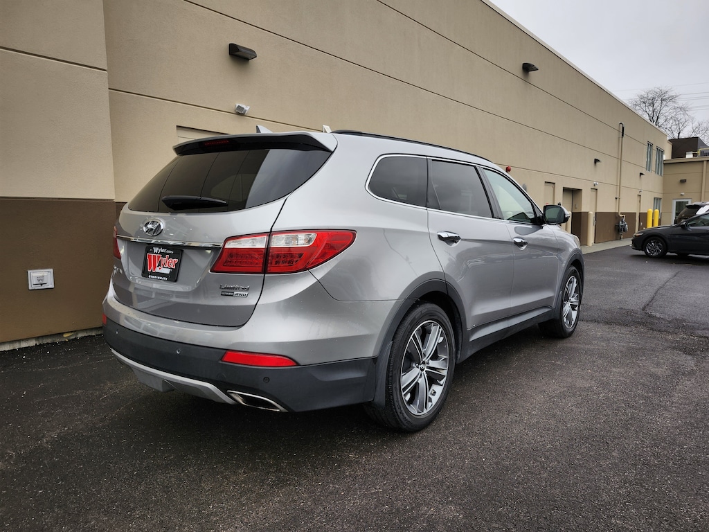 Jeff Wyler Superior Hyundai is excited to offer this charming 2016 Hyundai Santa Fe Limited in Iron Frost. Well equipped with: Ultimate Package 04 (High-Intensity Discharge Xenon Headlights, LED Taillights, Rear Parking Assistance System, and Ultimate Liftgate Badging), AWD, Gray Leather, 3.041 Axle Ratio, 3rd row seats: split-bench, 4-Wheel Disc Brakes, 6 Speakers, ABS brakes, Air Conditioning, Alloy wheels, AM/FM radio: SiriusXM, Auto-dimming Rear-View mirror, Automatic temperature control, Brake assist, Bumpers: body-color, Cargo Cover/Screen, Cargo Net, Cargo Tray, Carpeted Floor Mats, CD player, Compass, Delay-off headlights, Driver door bin, Driver vanity mirror, Dual front impact airbags, Dual front side impact airbags, Electronic Stability Control, Emergency communication system: Blue Link, Exterior Parking Camera Rear, First Aid Kit, Four wheel independent suspension, Front anti-roll bar, Front Bucket Seats, Front Center Armrest, Front dual zone A/C, Front fog lights, Front reading lights, Fully automatic headlights, Garage door transmitter: HomeLink, Heated door mirrors, Heated Front Bucket Seats, Heated front seats, Illuminated entry, Knee airbag, Leather Seating Surfaces, Low tire pressure warning, Mudguards, Occupant sensing airbag, Option Group 04, Outside temperature display, Overhead airbag, Overhead console, Panic alarm, Passenger door bin, Passenger vanity mirror, Power door mirrors, Power driver seat, Power Liftgate, Power passenger seat, Power steering, Power windows, Radio: AM/FM/CD/HD Radio/MP3 Audio System, Rear air conditioning, Rear anti-roll bar, Rear window defroster, Rear window wiper, Remote keyless entry, Roof rack: rails only, Security system, Speed control, Speed-sensing steering, Split folding rear seat, Spoiler, Steering wheel mounted audio controls, Tachometer, Telescoping steering wheel, Tilt steering wheel, Traction control, Trip computer, Turn signal indicator mirrors, Variably intermittent wipers, and Wheels: 19" x 7.5" Aluminum Alloy. This sales price excludes tax, title, and dealer fees. While every reasonable effort is made to ensure the accuracy of this information, we are not responsible for any errors or omissions contained on these pages. Used vehicles 10 years of age or newer with less than 100,000 miles are eligible for the Wyler Assurance Program, but eligible vehicles must pass our reconditioning process and multi-point inspection. Provided the vehicle passes inspection, vehicles will be eligible for the 6 month/6,000 mile limited warranty. The 6 month/6,000 mile limited warranty is NOT available on AS-IS vehicles, wholesale vehicles, lease buyback/pass-thru vehicles or un-inspected vehicles. Note that this program can also apply to vehicles where the remaining factory coverage is less than 6 months or 6,000 miles. Please check the Federal Trade Commission (FTC) Buyers guide on the vehicle for full details as to whether or not warranty coverage may apply. Contact Dealer for additional details. The Wyler Assurance 6 month/6,000 Mile limited warranty ends 6 months from the date of the Retail Purchase Agreement (BUYERS ORDER) or when the vehicle's odometer registers 6,000 additional miles to the mileage listed on the BUYERS ORDER, whichever comes first.Your Deductible - The warranty holder on your contract pays the first $100 of each covered repair.