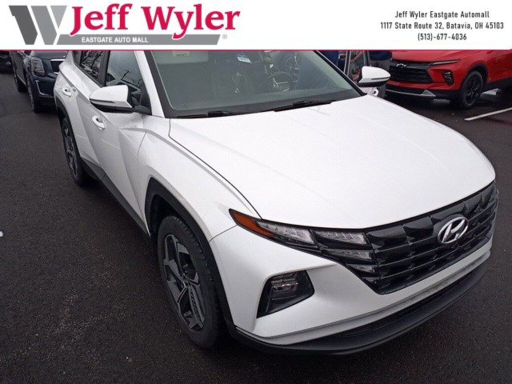 Jeff Wyler Eastgate Auto Mall is honored to offer this superb 2022 Hyundai Tucson SEL in Quartz White. Well equipped with: Cargo Package (Cargo Net, Cargo Tray, and First Aid Kit), Convenience Package (10.25" Digital Instrument Cluster, Auto-Dimming Interior Mirror w/Homelink, Digital Key, Dual Automatic Temperature Control, Hands-Free Power Liftgate w/Auto-Open, Leather-Wrapped Shift Knob, Leather-Wrapped Steering Wheel, LED Interior Lights (Room, Map), Option Group 02, Power Sunroof, Ultrasonic Rear Occupant Alert, Wheels: 19" x 7.5J" Machine-Face Finish Alloy, and Wireless Phone Charging), 3.648 Axle Ratio, 4-Wheel Disc Brakes, 6 Speakers, ABS brakes, Air Conditioning, Alloy wheels, AM/FM radio: SiriusXM, Apple CarPlay & Android Auto, Auto High-beam Headlights, Brake assist, Bumpers: body-color, Cargo Cover, Carpeted Floor Mats, Delay-off headlights, Driver door bin, Driver vanity mirror, Dual front impact airbags, Dual front side impact airbags, Electronic Stability Control, Emergency communication system: Blue Link Connected Car Service (3-year complimentary subscription), Four wheel independent suspension, Front and Rear Mudguards, Front anti-roll bar, Front Bucket Seats, Front Center Armrest, Front reading lights, Fully automatic headlights, Heated door mirrors, Heated Front Bucket Seats, Heated front seats, Illuminated entry, Low tire pressure warning, Occupant sensing airbag, Outside temperature display, Overhead airbag, Overhead console, Panic alarm, Passenger door bin, Passenger vanity mirror, Power door mirrors, Power driver seat, Power steering, Power windows, Radio data system, Radio: AM/FM/HD/SiriusXM Audio System, Rear anti-roll bar, Rear seat center armrest, Rear window defroster, Rear window wiper, Remote keyless entry, Roof rack: rails only, Security system, Speed control, Split folding rear seat, Spoiler, Stain & Odor Resistant Cloth Seat Trim, Steering wheel mounted audio controls, Tachometer, Telescoping steering wheel, Tilt steering wheel, Traction control, Trip computer, Turn signal indicator mirrors, Variably intermittent wipers, and Wheels: 17" x 7.0J" Alloy. Clean CARFAX. Ask about available certifications. Used vehicles 10 years of age or newer with less than 100,000 miles are eligible for the Wyler Assurance Program, but eligible vehicles must pass our reconditioning process and multi-point inspection. Provided the vehicle passes inspection, vehicles will be eligible for the 6 month/6,000 mile limited warranty. The 6 month/6,000 mile limited warranty is NOT available on AS-IS vehicles, wholesale vehicles, lease buyback/pass-thru vehicles or un-inspected vehicles. Note that this program can also apply to vehicles where the remaining factory coverage is less than 6 months or 6,000 miles. Please check the Federal Trade Commission (FTC) Buyers guide on the vehicle for full details as to whether or not warranty coverage may apply. Contact Dealer for additional details. The Wyler Assurance 6 month/6,000 Mile limited warranty ends 6 months from the date of the Retail Purchase Agreement (BUYERS ORDER) or when the vehicle's odometer registers 6,000 additional miles to the mileage listed on the BUYERS ORDER, whichever comes first. Your Deductible - The warranty holder on your contract pays the first $100 of each covered repair.
