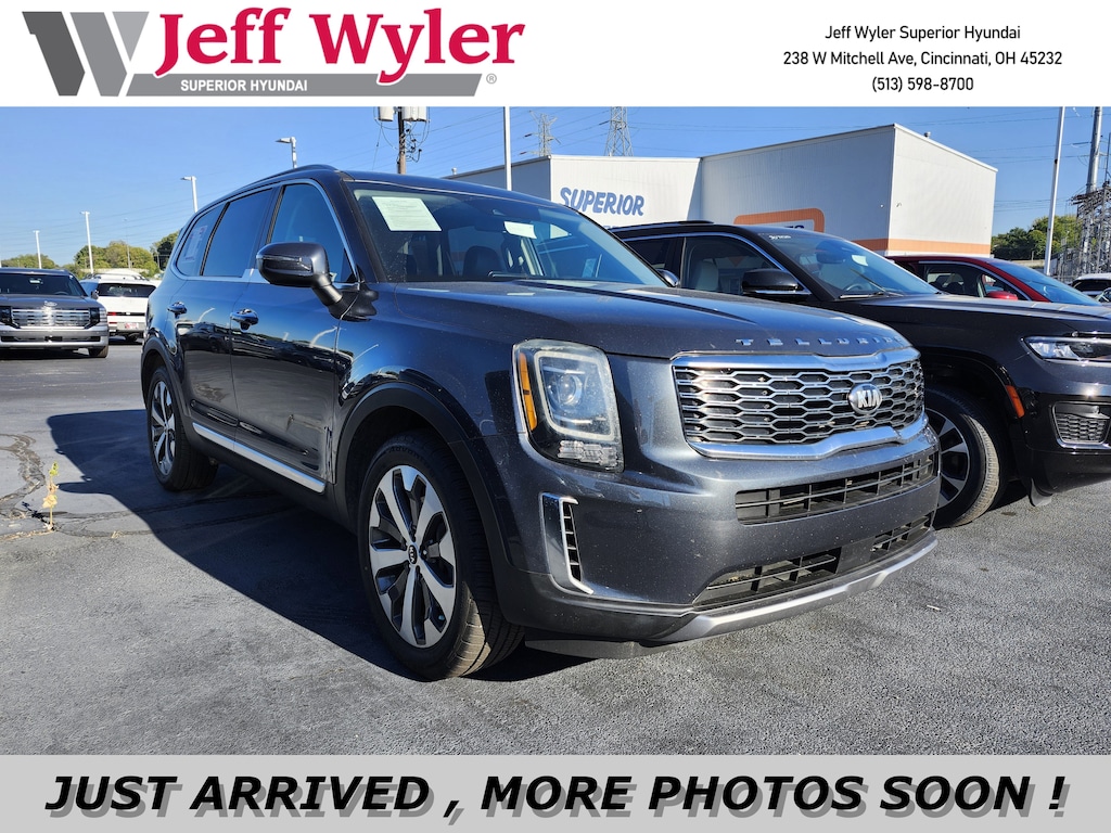 Jeff Wyler Superior Hyundai is pumped up to offer this superb 2020 Kia Telluride S in Gravity Gray. Well equipped with: S 8 Passenger Seating Package (8-Passenger Seating), 3.648 Axle Ratio, 3rd row seats: split-bench, 4-Wheel Disc Brakes, 6 Speakers, ABS brakes, Air Conditioning, Alloy wheels, AM/FM radio: SiriusXM, Apple CarPlay & Android Auto, Brake assist, Bumpers: body-color, Carpeted Floor Mats, Delay-off headlights, Driver door bin, Driver vanity mirror, Dual front impact airbags, Dual front side impact airbags, Electronic Stability Control, Emergency communication system: 911 Connect, Four wheel independent suspension, Front anti-roll bar, Front Bucket Seats, Front Center Armrest, Front reading lights, Fully automatic headlights, Heated door mirrors, Heated Front Bucket Seats, Heated front seats, Hybrid Cargo Net, Illuminated entry, Knee airbag, Leather Shift Knob, Leather steering wheel, Low tire pressure warning, Occupant sensing airbag, Outside temperature display, Overhead airbag, Overhead console, Panic alarm, Passenger door bin, Passenger vanity mirror, Power door mirrors, Power driver seat, Power moonroof, Power steering, Power windows, Radio data system, Radio: AM/FM/MP3/SiriusXM Audio System, Rear air conditioning, Rear anti-roll bar, Rear reading lights, Rear window defroster, Rear window wiper, Reclining 3rd row seat, Remote keyless entry, Roof rack: rails only, Security system, SOFINO Artificial Leather Upholstery, Speed control, Speed-sensing steering, Split folding rear seat, Spoiler, Steering wheel mounted audio controls, Tachometer, Telescoping steering wheel, Tilt steering wheel, Traction control, Trip computer, Turn signal indicator mirrors, Variably intermittent wipers, Wheel Locks, and Wheels: 7.5" x 20" Machined Finish Alloy. This sales price excludes tax, title, and dealer fees. While every reasonable effort is made to ensure the accuracy of this information, we are not responsible for any errors or omissions contained on these pages. Used vehicles 10 years of age or newer with less than 100,000 miles are eligible for the Wyler Assurance Program, but eligible vehicles must pass our reconditioning process and multi-point inspection. Provided the vehicle passes inspection, vehicles will be eligible for the 6 month/6,000 mile limited warranty. The 6 month/6,000 mile limited warranty is NOT available on AS-IS vehicles, wholesale vehicles, lease buyback/pass-thru vehicles or un-inspected vehicles. Note that this program can also apply to vehicles where the remaining factory coverage is less than 6 months or 6,000 miles. Please check the Federal Trade Commission (FTC) Buyers guide on the vehicle for full details as to whether or not warranty coverage may apply. Contact Dealer for additional details. The Wyler Assurance 6 month/6,000 Mile limited warranty ends 6 months from the date of the Retail Purchase Agreement (BUYERS ORDER) or when the vehicle's odometer registers 6,000 additional miles to the mileage listed on the BUYERS ORDER, whichever comes first.Your Deductible - The warranty holder on your contract pays the first $100 of each covered repair.