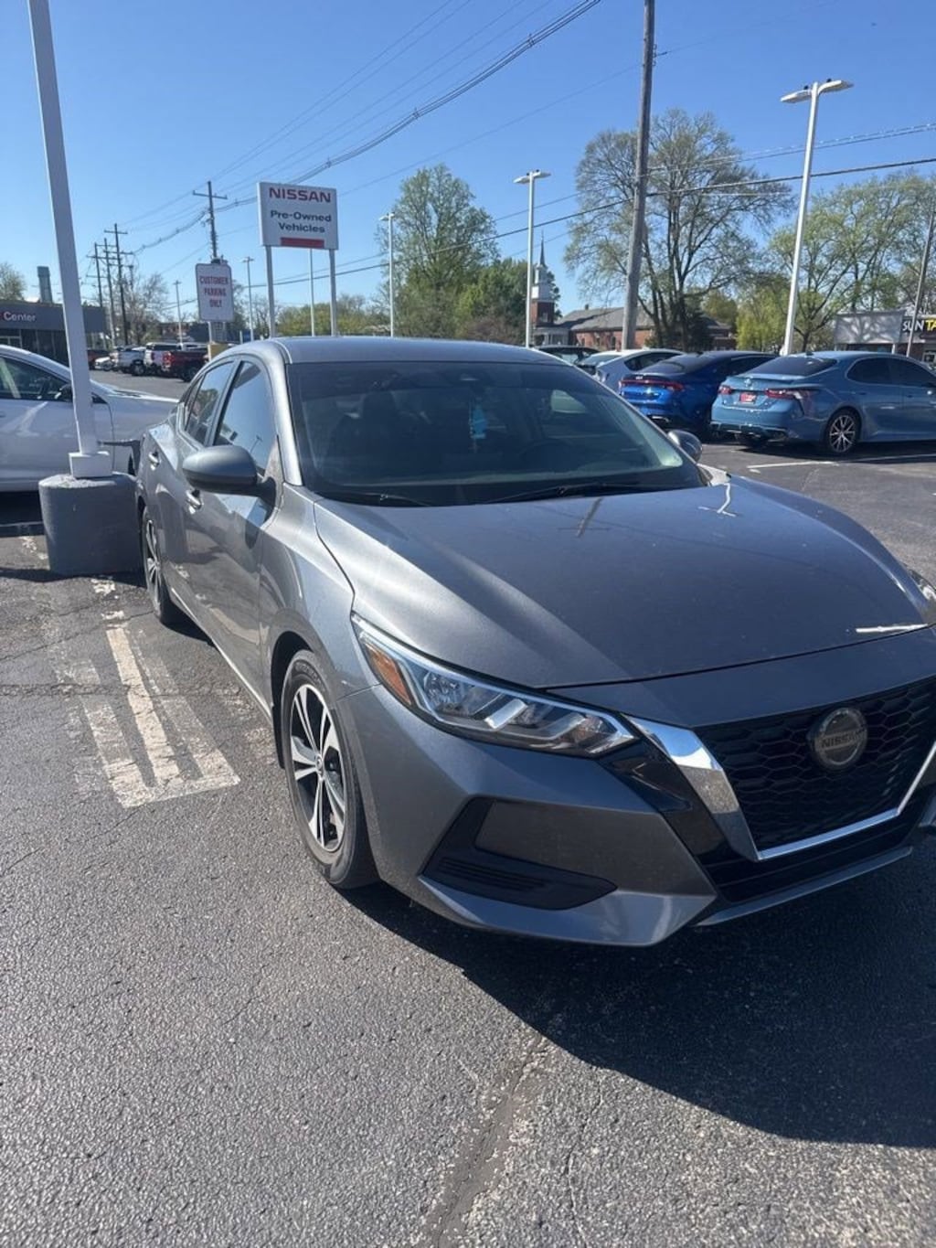 Jeff Wyler Nissan of Louisville is pumped up to offer this wonderful-looking 2022 Nissan Sentra SV in Gun Metallic. ** HOME DELIVERY OPTIONS! ** Electronics Package (Frameless EC Mirror w/Universal Remote and Map Pocket Lighting), CVT with Xtronic, Charcoal Cloth, 16" Alloy Wheels, 4-Wheel Disc Brakes, 6 Speakers, ABS brakes, Air Conditioning, Alloy wheels, AM/FM radio: SiriusXM, Auto High-beam Headlights, Blind Spot Warning, Body Colored Splash Guards (4-Piece), Brake assist, Bumpers: body-color, Carpeted Floor Mats w/Trunk Mat, Clear Rear Bumper Protector, Delay-off headlights, Door Sill Plates, Driver door bin, Driver vanity mirror, Dual front impact airbags, Dual front side impact airbags, Electronic Stability Control, Four wheel independent suspension, Front anti-roll bar, Front Bucket Seats, Front Center Armrest, Front reading lights, Fully automatic headlights, Heated door mirrors, Illuminated entry, Knee airbag, Low tire pressure warning, NissanConnect featuring Apple CarPlay and Android Auto, Occupant sensing airbag, Outside temperature display, Overhead airbag, Overhead console, Panic alarm, Passenger door bin, Passenger vanity mirror, Power door mirrors, Power steering, Power windows, Premium Cloth Seat Trim, Radio data system, Radio: AM/FM w/RDS/MP3/Aux-In, Rear anti-roll bar, Rear Parking Sensors, Rear seat center armrest, Rear side impact airbag, Rear Spoiler, Rear window defroster, Remote keyless entry, Security system, Speed control, Speed-sensing steering, Split folding rear seat, Steering wheel mounted audio controls, Tachometer, Telescoping steering wheel, Tilt steering wheel, Traction control, Trip computer, and Variably intermittent wipers Our PRE-OWNED vehicles are put through a rigorous 167- POINT QUALITY ASSURANCE INSPECTION along with an average amount of over $1,400.00 SPENT to recondition each vehicle so we can be sure to deliver you the highest quality vehicle like you deserve! ***ONLINE PRICE DOES NOT INCLUDE WYLER FAMILY FIRST PACKAGE*** Stop by 4136 Shelbyville Road to see for yourself, or give us a call @ 502-897-3151 to schedule your test drive! CVT with Xtronic, Charcoal Cloth.