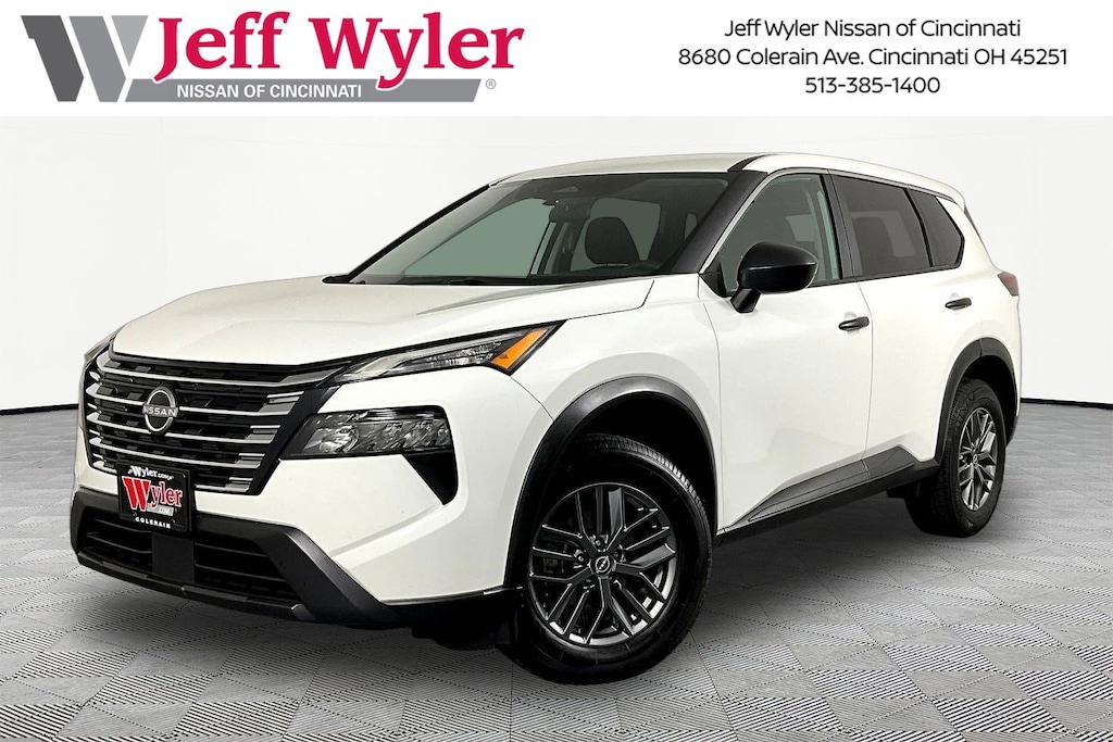 Glacier White 2024 Nissan Rogue S FWD CVT with Xtronic Jeff Wyler Nissan of Cincinnati is pleased to offer this wonderful 2024 Nissan Rogue S in Glacier White. Well equipped with: 17" Aluminum Alloy Wheels, 4 Speakers, 4-Wheel Disc Brakes, 5.676 Axle Ratio, ABS brakes, Air Conditioning, Alloy wheels, AM/FM radio: SiriusXM, Auto High-beam Headlights, Blind Spot Warning, Brake assist, Bumpers: body-color, Cloth Seat Trim, Delay-off headlights, Driver door bin, Driver vanity mirror, Dual front impact airbags, Dual front side impact airbags, Electronic Stability Control, First Aid Kit, Floor Mats w/1-Piece Cargo Area Protector, Four wheel independent suspension, Front anti-roll bar, Front Bucket Seats, Front Center Armrest, Front reading lights, Fully automatic headlights, Illuminated entry, Knee airbag, Low tire pressure warning, NissanConnect featuring Apple CarPlay and Android Auto, Occupant sensing airbag, Outside temperature display, Overhead airbag, Overhead console, Panic alarm, Passenger door bin, Passenger vanity mirror, Power door mirrors, Power steering, Power windows, Radio data system, Radio: AM/FM NissanConnect, Rear anti-roll bar, Rear Parking Sensors, Rear seat center armrest, Rear side impact airbag, Rear window defroster, Rear window wiper, Remote keyless entry, Speed control, Speed-Sensitive Wipers, Split folding rear seat, Spoiler, Steering wheel mounted audio controls, Tachometer, Telescoping steering wheel, Tilt steering wheel, Traction control, Trip computer, and Variably intermittent wipers. 1.5L DOHC
