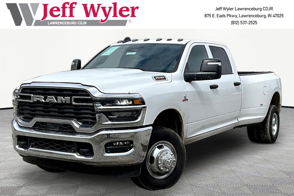 Jeff Wyler Chrysler Dodge Jeep of Lawrenceburg is pumped up to offer this charming 2026 Ram 3500 Tradesman in Bright White Clearcoat. Bed Convenience Group (LED Bed Lighting and MOPAR Spray in Bedliner), Quick Order Package 24A Tradesman, Tradesman Level 2A Equipment Group (115-Volt Auxiliary Front Power Outlet, 12" Touchscreen Display, 2 Way Rear Headrest Seat, 4 Way Front Headrests, 40/20/40 Split Bench Seat, 400W Inverter, 4G LTE Wi-Fi Hot Spot, Air Conditioning ATC with Dual Zone Control, Alexa Built-in, Apple CarPlay, Auto-Dimming Rear-View Mirror, Black Exterior Mirrors, Bright Front Bumper, Bright Rear Bumper, Bright Wheel Skins, Carpet Floor Covering, Center Hub, Chrome Grille Surround, Cloth 40/20/40 Bench Seat, Connected Travel and Traffic Services, Connectivity - US/Canada, Convenience Group, Disassociated Touchscreen Display, Emergency Vehicle Alert System (EVAS), Exterior 115V AC Outlet, Exterior Mirrors Courtesy Lamps, Exterior Mirrors with Heating Element, Exterior Mirrors with Supplemental Signals, For Details Visit DriveUconnect.com, For More Info, Call 800-643-2112, Front and Rear Floor Mats, Front Armrest with Cupholders, Global Telematics Box Module, Google Android Auto, GPS Antenna Input, GPS Navigation, HD Radio, Integrated Voice Command with Bluetooth, Manual Adjust 4-Way Driver Seat, Manual Adjust 4-Way Front Passenger Seat, Manual Folding Exterior Mirrors, Manual Telescoping Mirrors, Matte Black Mesh with Chrome Grille, Mirror Running Lights, Mopar Black Tubular Side Steps, Off-Road Information Pages, ParkSense Front/Rear Park Assist System, Power Adjust Mirrors, Power Heat Fold Telescopic Mirrors, Power-Adjustable Convex Aux Mirrors, Radio: Uconnect 5 Navigation with 12.0" Display, Rear Folding Seat, Rear Power Sliding Window, Remote USB Port - Charge Only, Selectable Tire Fill Alert, SiriusXM Radio Service, SiriusXM with 360L, Storage Tray, Tinted Acoustic Windshield Glass, and Trailer Tow Pages), 4-Wheel Disc Brakes, 50 Gallon Fuel Tank, 5th Wheel/Gooseneck Towing Prep Group, 6 Speakers, 6000# Front Axle with Hub Extension, ABS brakes, Air Conditioning, AM/FM radio: SiriusXM, Apple CarPlay/Android Auto, Black Wheel Center Hub, Box and Rear Fender Clearance Lamps, Brake assist, Clearance Lamps, Compass, Delay-off headlights, Driver door bin, Dual front impact airbags, Dual front side impact airbags, Dual Rear Wheels, Electronic Stability Control, Front anti-roll bar, Front Center Armrest w/Storage, Front fog lights, Front License Plate Bracket, Front reading lights, Fully automatic headlights, Illuminated entry, Low tire pressure warning, MOPAR Front and Rear Rubber Floor Mats, Nexen Brand Tires, Occupant sensing airbag, Outside temperature display, Overhead airbag, Overhead console, Panic alarm, ParkView Rear Back-Up Camera, Passenger door bin, Passenger vanity mirror, Power steering, Power windows, Radio data system, Radio: Uconnect 5 with 8.4" Display, Rear step bumper, Rear Wheelhouse Liners, Rear window defroster, Remote keyless entry, Speed control, Tachometer, Tilt steering wheel, Traction control, Variably intermittent wipers, Voltmeter, Wheels: 17" x 6.0" Steel Chrome Clad, and Wheels: 18" x 8.0" Black Painted Steel Our PRE-OWNED vehicles are put through a rigorous 167- POINT QUALITY ASSURANCE INSPECTION along with an average amount of over $1,400.00 SPENT to recondition each vehicle so we can be sure to deliver you the highest quality vehicle like you deserve! ***ONLINE PRICE DOES NOT INCLUDE WYLER FAMILY FIRST PACKAGE*** Stop by 4136 Shelbyville Road to see for yourself, or give us a call @ 502-897-3151 to schedule your test drive! Ask about available certifications.