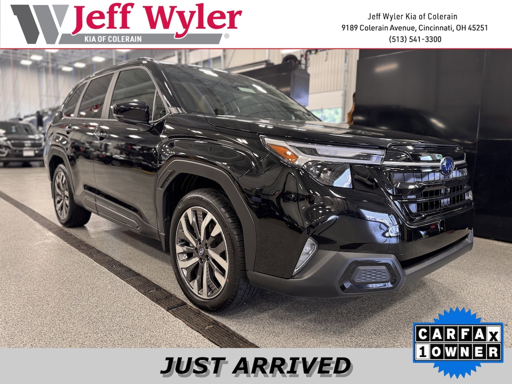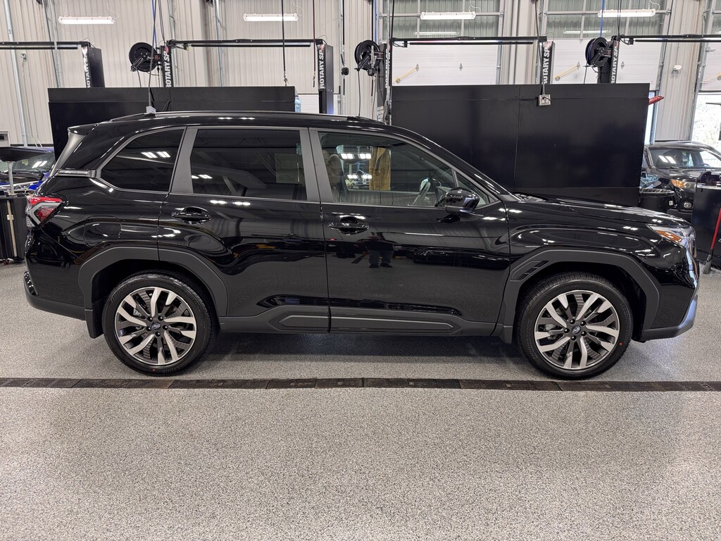 Jeff Wyler Kia of Colerain is pumped up to offer this handsome 2026 Subaru Forester Touring in Crystal Black Silica. Standard Model, Touring Package (All-Weather Floor Liners, Auto-Dimming Exterior Mirror with Approach Light, Cargo Net, LED Upgrade, Rear Bumper Cover, and Splash Guards), 11 Speakers, 4-Wheel Disc Brakes, ABS brakes, Air Conditioning, Alloy wheels, AM/FM radio: SiriusXM with 360L, Anti-whiplash front head restraints, Auto High-beam Headlights, Automatic temperature control, Brake assist, Bumpers: body-color, Driver door bin, Driver vanity mirror, Dual front impact airbags, Dual front side impact airbags, Electronic Stability Control, Emergency communication system: MySubaru Companion (5-years free), Exterior Parking Camera Rear, Four wheel independent suspension, Front anti-roll bar, Front Bucket Seats, Front Center Armrest, Front dual zone A/C, Front fog lights, Front reading lights, Fully automatic headlights, harman/kardon® Speakers, Heads-Up Display, Heated and Ventilated Front Bucket Seats, Heated door mirrors, Heated front seats, Heated rear seats, Heated steering wheel, HVAC memory, Illuminated entry, Knee airbag, Leather Shift Knob, Leather steering wheel, Low tire pressure warning, Memory seat, Navigation System, Occupant sensing airbag, Outside temperature display, Overhead airbag, Overhead console, Panic alarm, Passenger door bin, Passenger vanity mirror, Perforated Leather-Trimmed Upholstery, Power door mirrors, Power driver seat, Power Liftgate, Power moonroof: Panoramic, Power passenger seat, Power steering, Power windows, Radio data system, Radio: Subaru 11.6" Multimedia Navigation System, Rain sensing wipers, Rear anti-roll bar, Rear seat center armrest, Rear window defroster, Rear window wiper, Remote keyless entry, Security system, Speed control, Speed-sensing steering, Split folding rear seat, Spoiler, Steering wheel mounted audio controls, Tachometer, Telescoping steering wheel, Tilt steering wheel, Traction control, Trip computer, Turn signal indicator mirrors, Variably intermittent wipers, Ventilated front seats, and Wheels: 19" x 7.5 J Dark Gray Aluminum-Alloy Our PRE-OWNED vehicles are put through a rigorous 167- POINT QUALITY ASSURANCE INSPECTION along with an average amount of over $1,400.00 SPENT to recondition each vehicle so we can be sure to deliver you the highest quality vehicle like you deserve! ***ONLINE PRICE DOES NOT INCLUDE WYLER FAMILY FIRST PACKAGE***