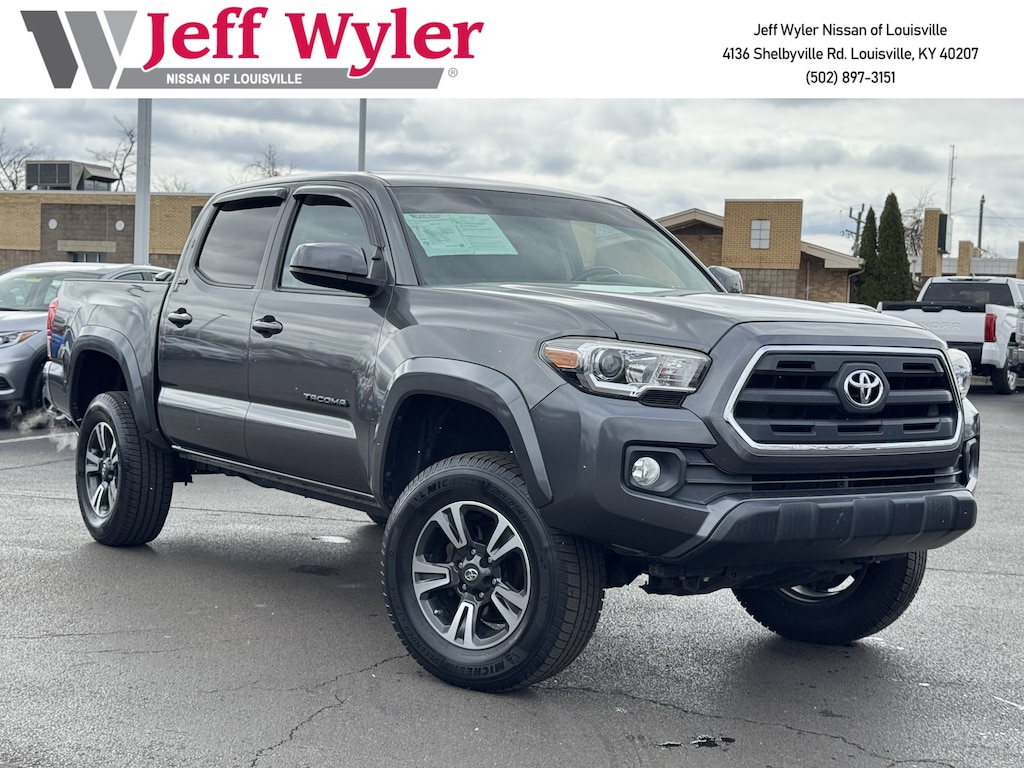 Jeff Wyler Nissan of Louisville is pumped up to offer this terrific, reliable 2017 Toyota Tacoma in . ** HOME DELIVERY OPTIONS! ** 4WD, ABS brakes, Air Conditioning, Anti-whiplash front head restraints, Brake assist, Bumpers: body-color, CD player, Driver door bin, Dual front impact airbags, Dual front side impact airbags, Electronic Stability Control, Exterior Parking Camera Rear, Front anti-roll bar, Front Bucket Seats, Front Center Armrest, Front reading lights, Front wheel independent suspension, Illuminated entry, Knee airbag, Low tire pressure warning, Occupant sensing airbag, Outside temperature display, Overhead airbag, Overhead console, Passenger door bin, Power door mirrors, Power steering, Power windows, Rear step bumper, Speed-sensing steering, Split folding rear seat, Steering wheel mounted audio controls, Tachometer, Telescoping steering wheel, Tilt steering wheel, and Traction control Our PRE-OWNED vehicles are put through a rigorous 167- POINT QUALITY ASSURANCE INSPECTION along with an average amount of over $1,400.00 SPENT to recondition each vehicle so we can be sure to deliver you the highest quality vehicle like you deserve! ***ONLINE PRICE DOES NOT INCLUDE WYLER FAMILY FIRST PACKAGE*** Stop by 4136 Shelbyville Road to see for yourself, or give us a call @ 502-897-3151 to schedule your test drive! 4WD.
